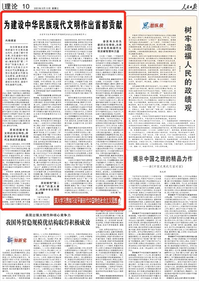 新闻网讯 2023年9月13日,《人民日报》理论版刊发我校党委副书记、校长郭广生署名文章《为建设中华民族现代文明作出首都贡献(深入学习贯彻习近平新时代中国特色社会主义思想)》,文章从深刻把握中华文明的突出特性、深刻领悟“第二个结合”的重大意义、奋发有为担负新的文化使命等方面进行了深入阐释。全文内容如下: