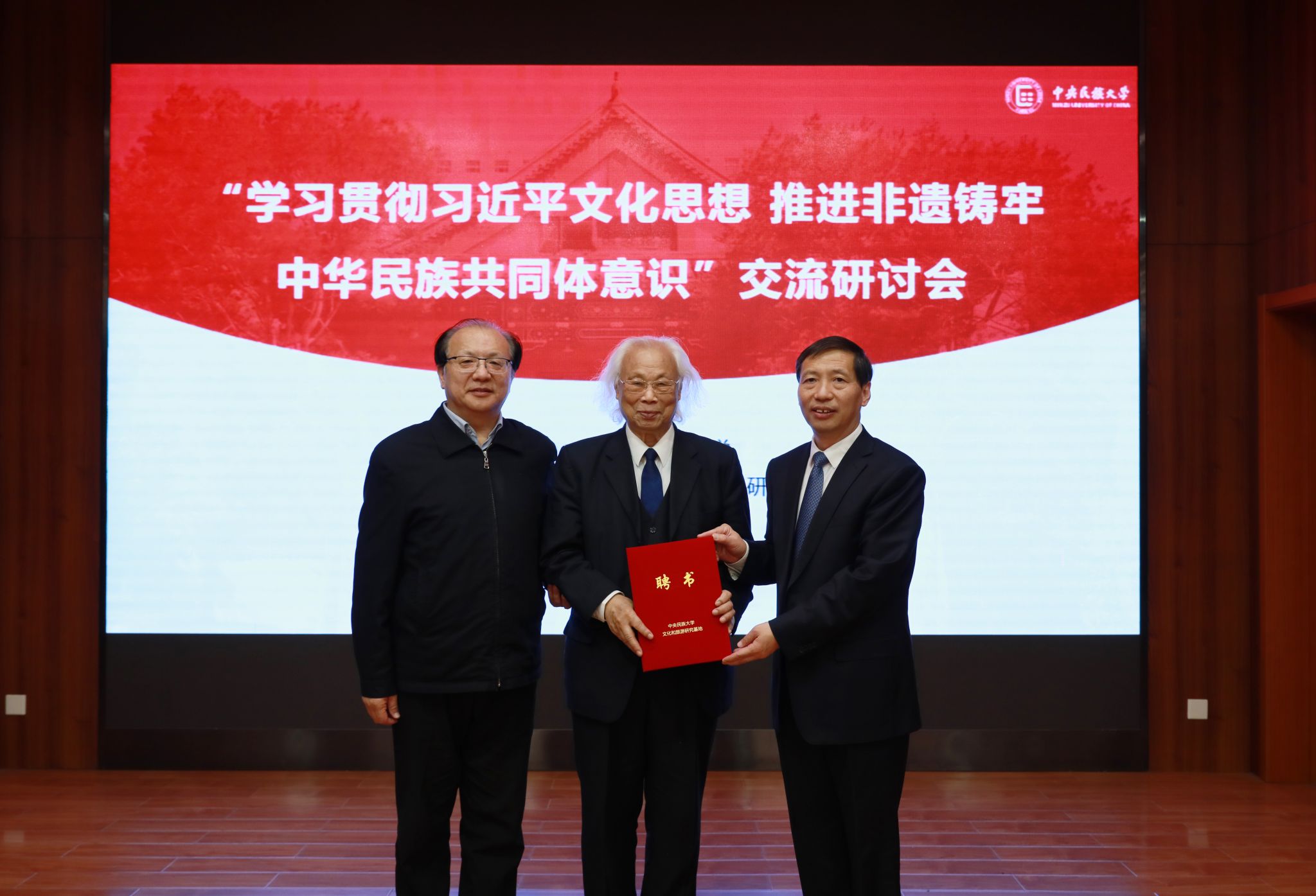 会议还举行了基地学术委员会和特聘研究员聘任仪式。在学术交流阶段,与会专家学者围绕习近平文化思想研究阐释、非遗保护的中国经验、非遗保护与铸牢中华民族共同体意识等议题进行交流研讨。(摄影:马丹妮)