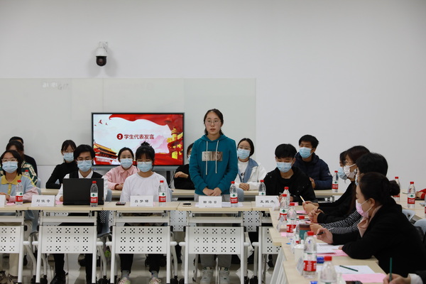 班会上,辅导员张英老师介绍了班级基本情况和工作开展情况,班主任安静老师作总结发言。熊飞宇、田海日、吕梦镅、唐光梅、刘佳奇、马昕昱、王鹏杰、张羽雯、古再努尔等九位学生代表从不同的角度,分享了自己的大学生活和对美好未来的畅想。