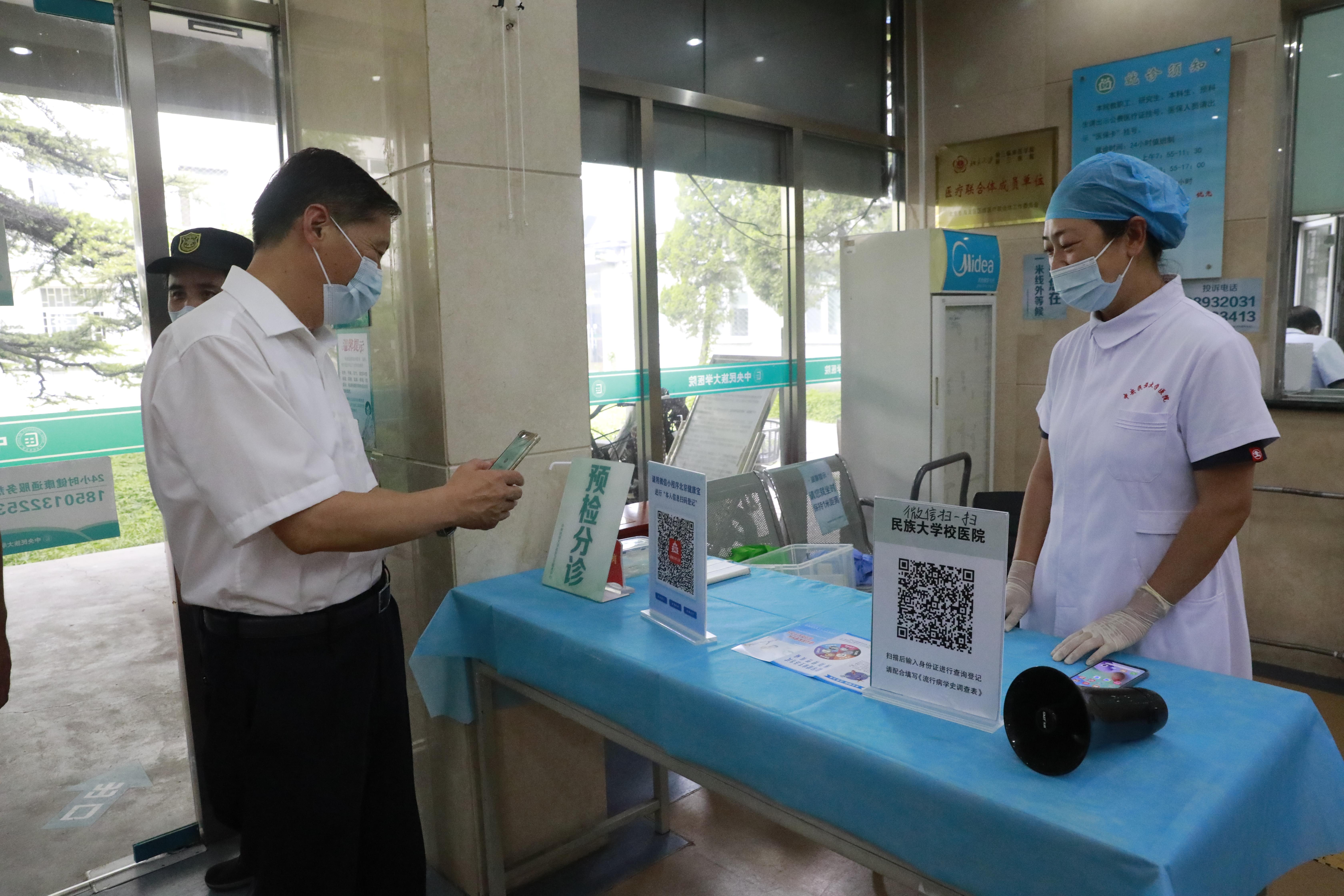 郭广生一行实地检查了海淀和丰台两校区的学生食堂、学生宿舍、教学楼、学生活动中心、校医院等地,深入了解疫情防控、校园环境、安全生产和秋季学期教学安排及开学相关工作情况。