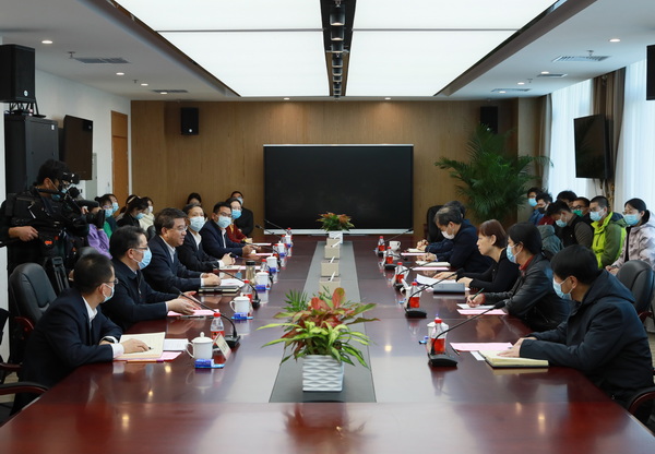 新闻网讯 12月6日上午,北京市委常委、政法委书记齐静来到丰台校区,就“如何贯彻落实党的十九届六中全会精神,更加奋发有为地推动北京新发展”开展调研。市委办公厅副主任庞学栋、市委教育工委副书记李军锋、市民宗委副主任丁希松、丰台区委副书记底志欣,校党委书记张京泽,党委副书记、校长郭广生,党委副书记、副校长李计勇等参加调研并座谈。