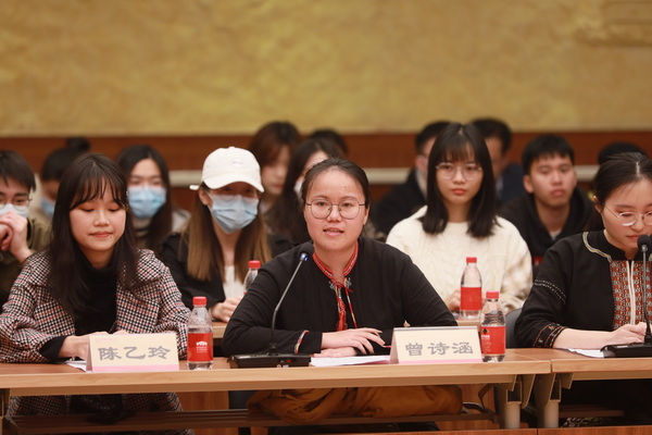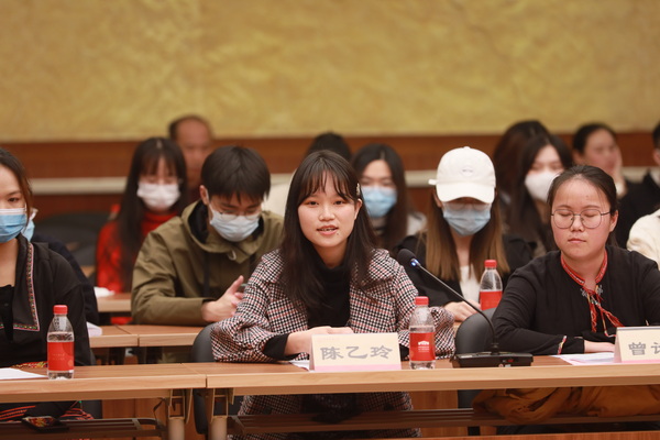 座谈会上,海南省民族宗教事务委员会副主任符秀容向现场大学生代表们介绍了海南自由贸易港建设及民族地区发展情况。海南省委人才发展局副局长文振忠介绍了海南省人才引进相关政策。宋敏向大家介绍了william威廉中文官网特色思政教育、招生就业、人才培养等方面情况。清华大学2019级新闻专业本科生林子田、北京大学2020级人文科学实验班本科生曾诗涵、william威廉中文官网2020级人类学专业研究生陈乙玲分别发言。与会学生代表与海南省委、省政府领导就法律、教育、人才、民族文化传承等方面问题进行了互动交流。学校相关职能部门负责人参加座谈。(摄影:马丹妮)
