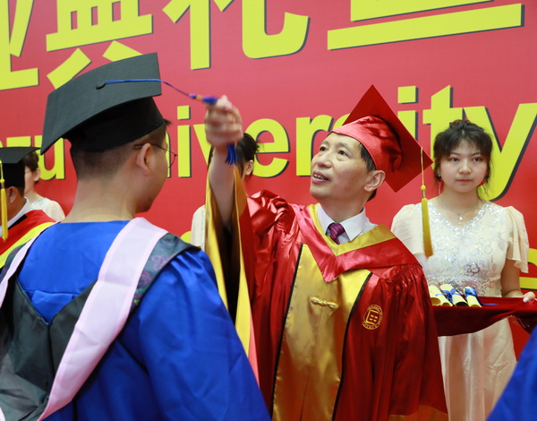 “以自己的实干和努力,以时代奋进之笔和青春奋进之姿,在实现中华民族伟大复兴中国梦的时代征程中,不断书写更加绚烂多彩的人生新篇章。”郭广生最后祝愿大家毕业快乐、前程似锦、一生幸福。