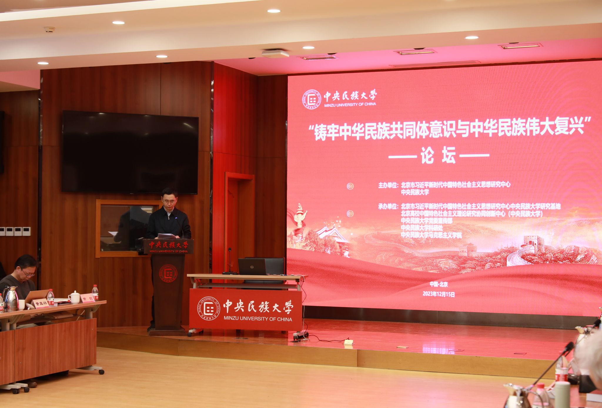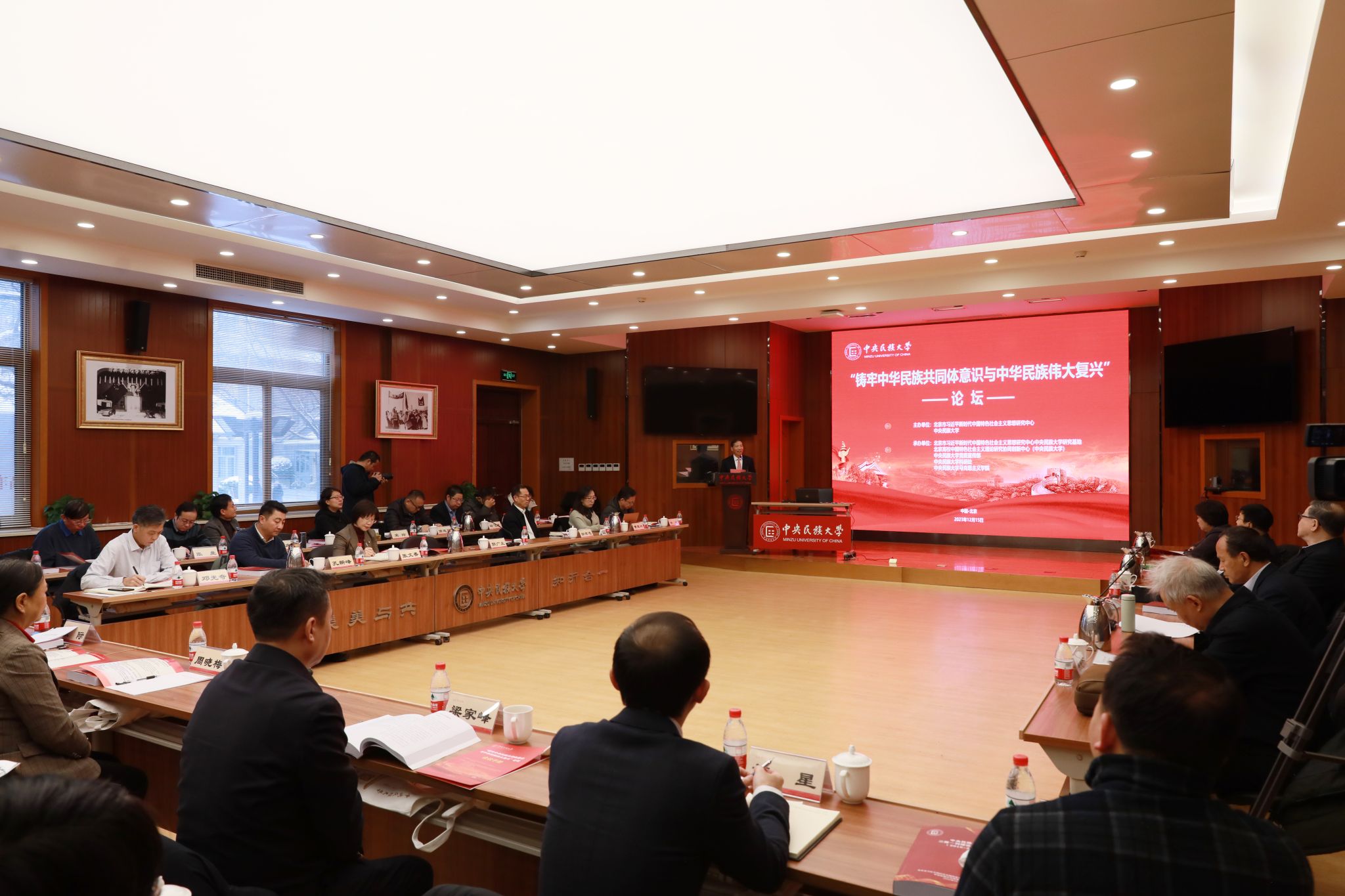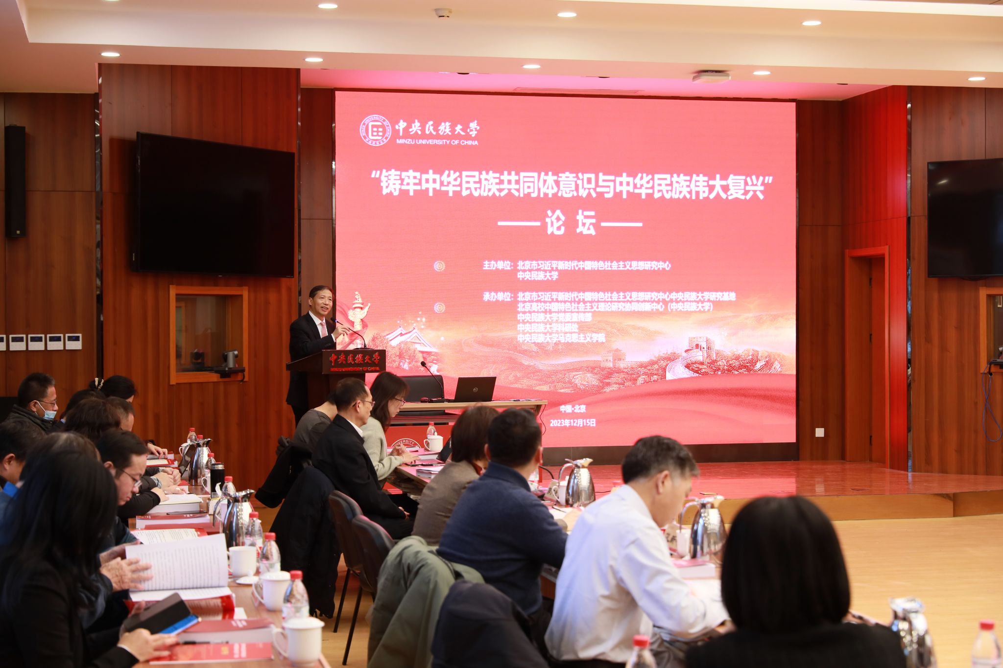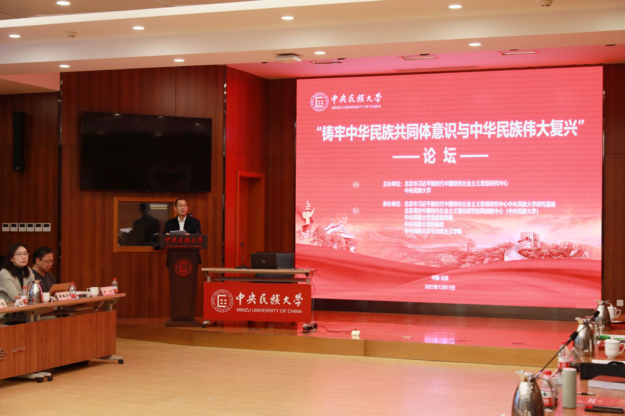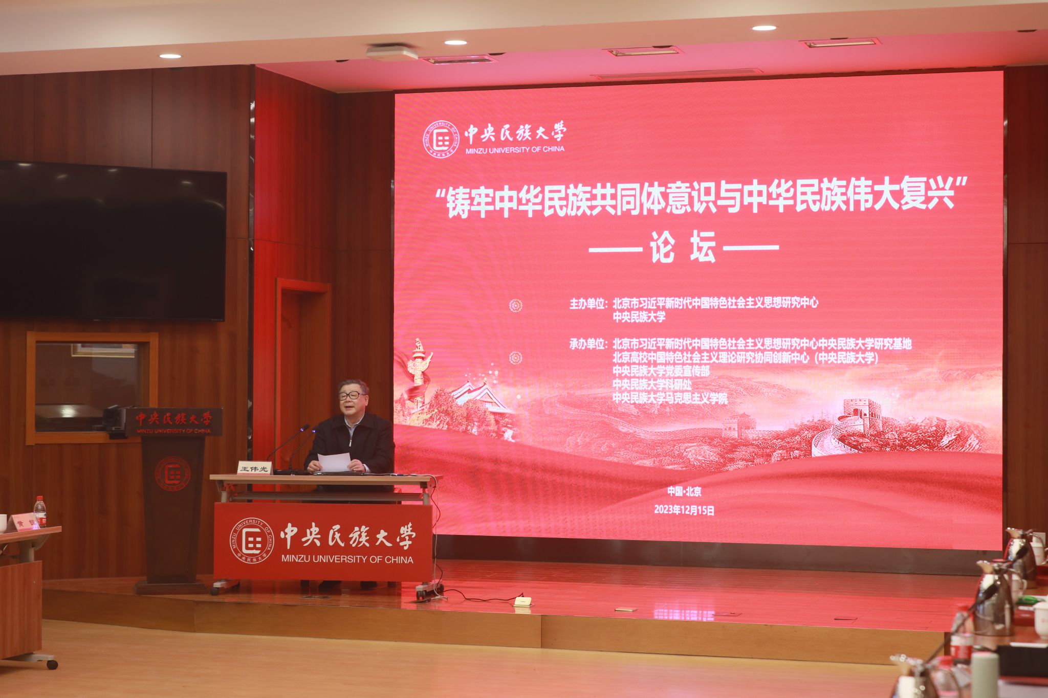 新闻网讯 12月15日,北京市习近平新时代中国特色社会主义思想研究中心与william威廉中文官网在海淀校区知行堂共同举办 “铸牢中华民族共同体意识与中华民族伟大复兴”论坛。中国社会科学院原党组书记、院长王伟光,中华诗词学会会长周文彰,中共党史学会副会长李忠杰,中共中央党校原校委委员、副教育长韩庆祥,中国人民大学党委常委、副校长王易等专家围绕“铸牢中华民族共同体意识与中华民族伟大复兴”主题作了主旨报告、展开深入讨论。