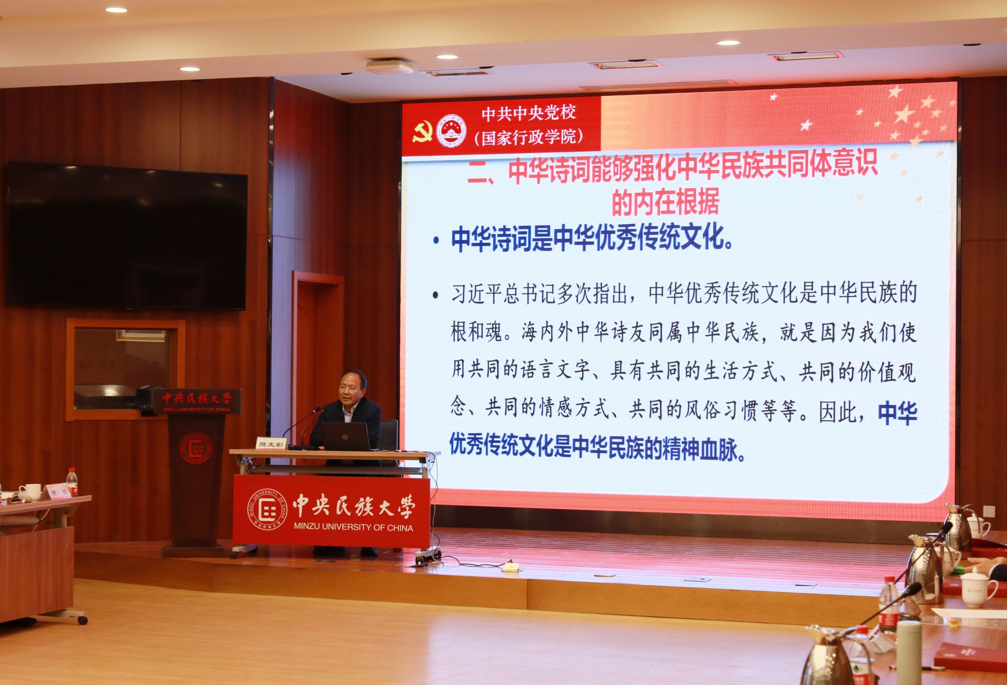 周文彰作了题为《让中华诗词在铸牢中华民族共同体意识中发挥独特作用》的主旨报告,从中华诗词强化中华民族共同体意识的一次成功探索、中华诗词强化中华民族共同体意识的内在根据、中华诗词强化中华民族共同体意识的行动计划三个方面,深刻阐述了中华诗词所内含的理想抱负、家国情怀、传统美德、自强不息、奋斗奉献精神,自然而然地强化海外华人的民族认同感、民族自豪感、民族自信心。中华诗词在铸牢中华民族共同体意识中越来越彰显出独特的作用和贡献。