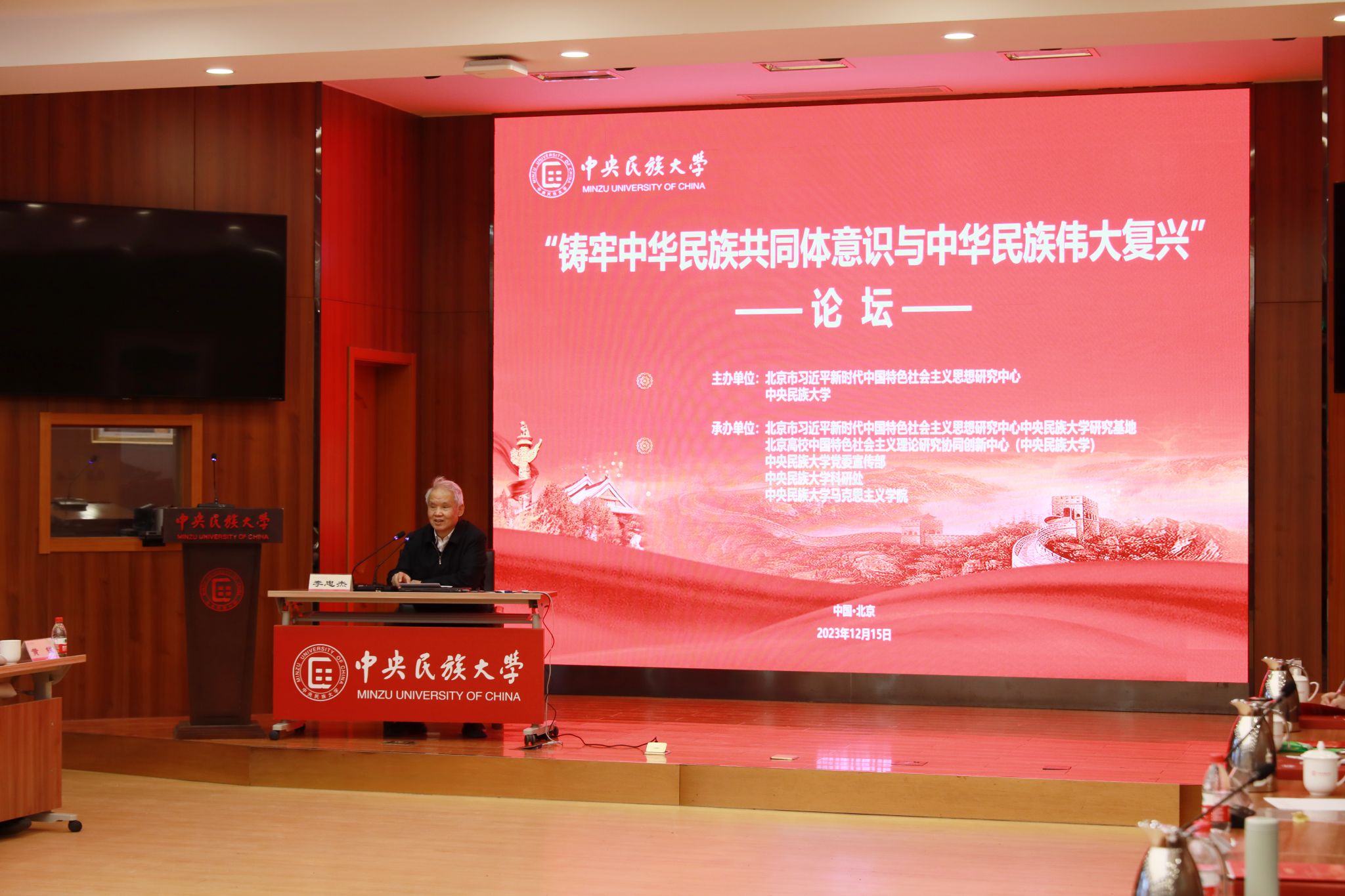 李忠杰作了题为《加强中华民族现代文明建设,铸牢中华民族共同体意识》的主旨报告,他指出,建设中华民族现代文明,要把铸牢中华民族共同体意识作为重要内容,处理好继承与创新的关系、一体性与多样化的关系,通过建设中华民族现代文明,进一步铸牢中华民族共同体意识,为实现中华民族伟大复兴提供强大的精神和文化的力量。