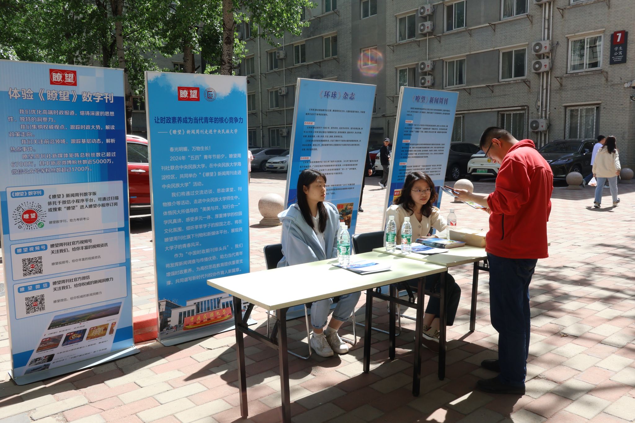 活动当天,《瞭望》系列品牌刊物在海淀校区铺设展位,对《瞭望》新闻周刊、《环球》杂志、《瞭望》数字刊等进行推广展示。(供图:马丹妮、周丽烨)