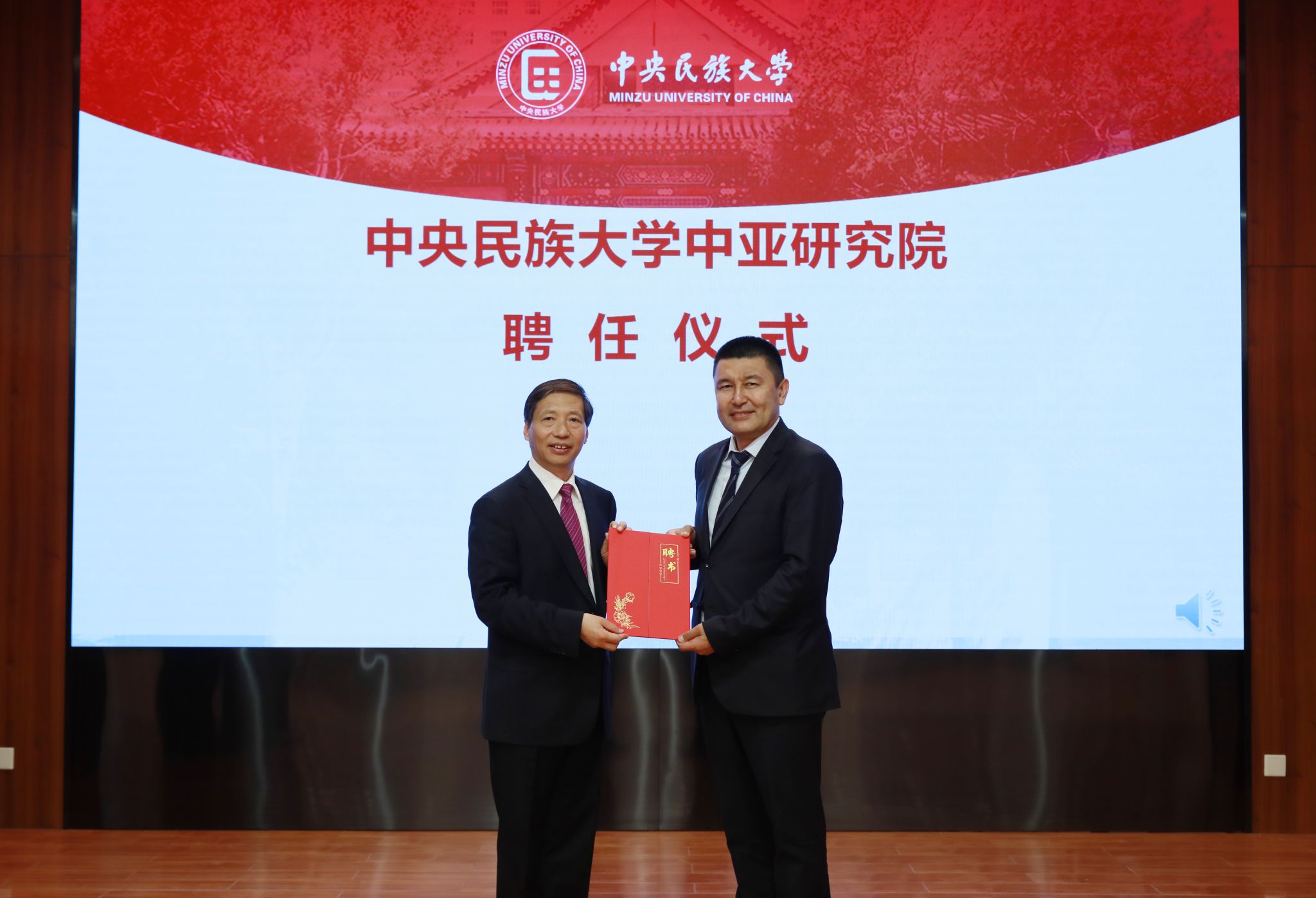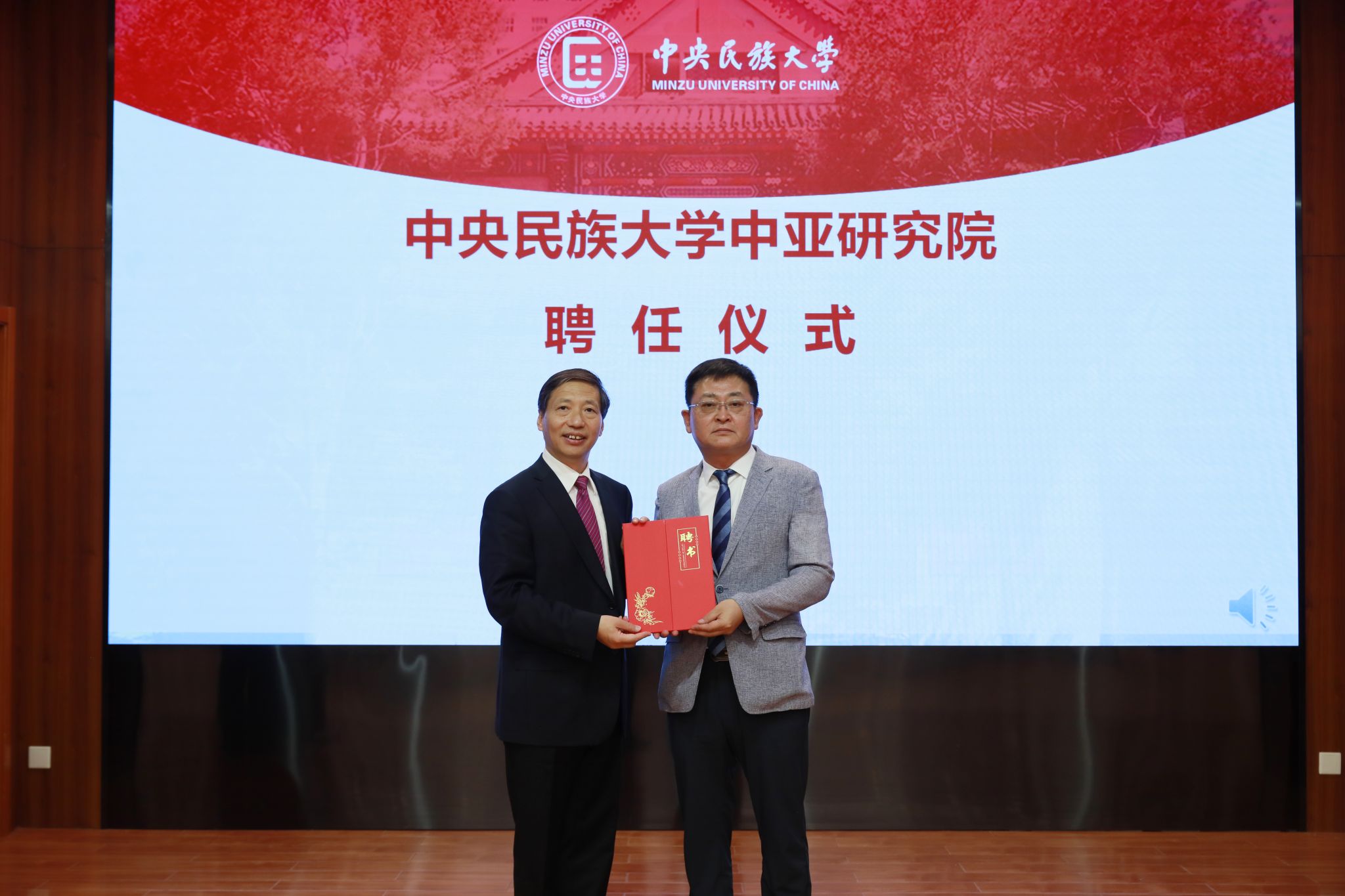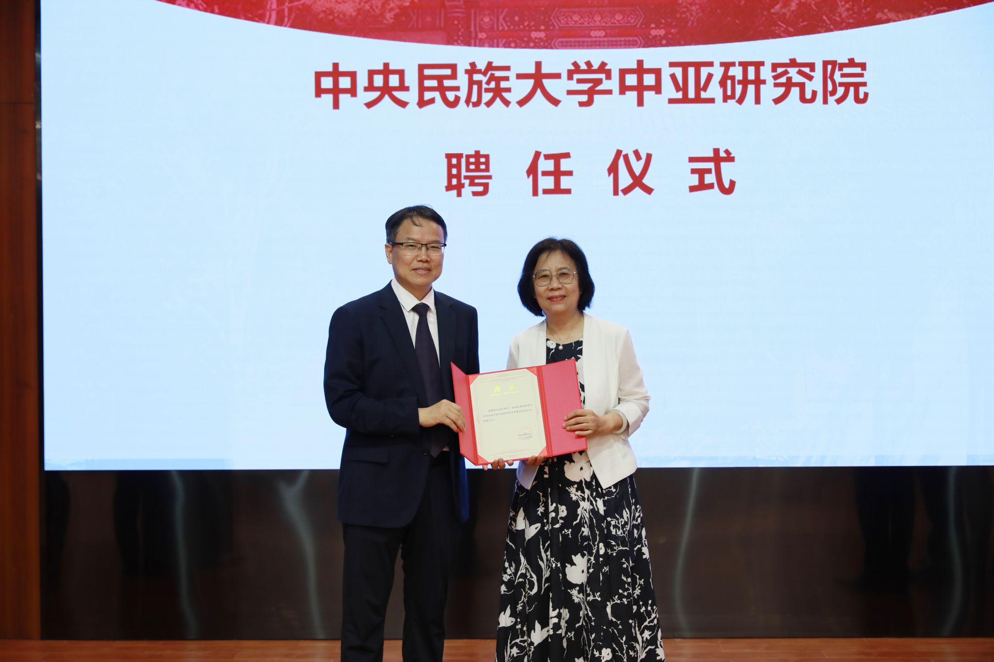 查显友为中亚研究院名誉院长胡振华颁发聘书。郭广生为中亚研究院院长姜镕泽、副院长努尔巴汗·卡力列汗、古丽巴努木·克拜吐里、学术委员会主任杨圣敏颁发聘书。石亚洲宣读学校成立中亚研究院的决定,并为中亚研究院学术委员会副主任颁发聘书。