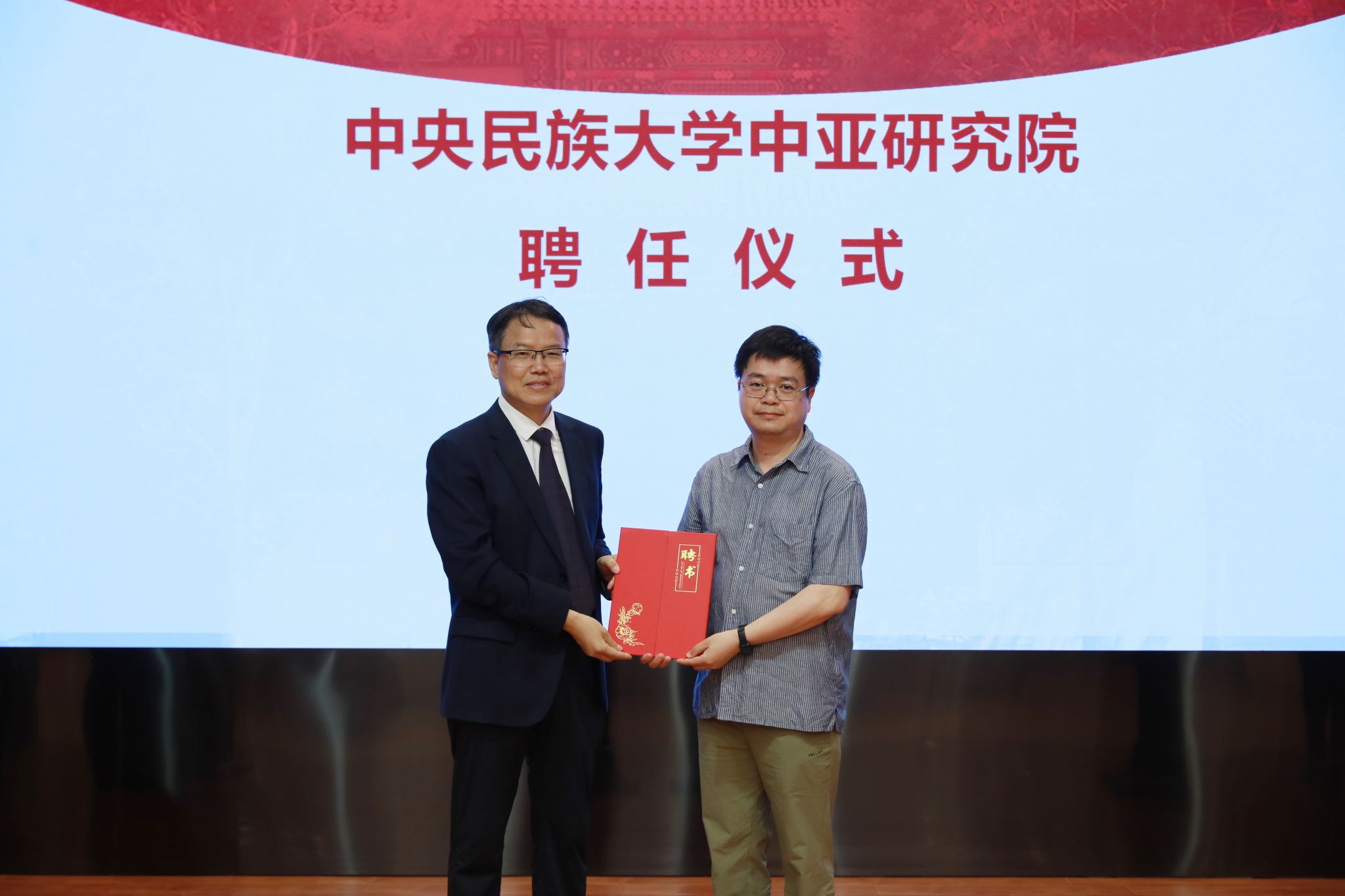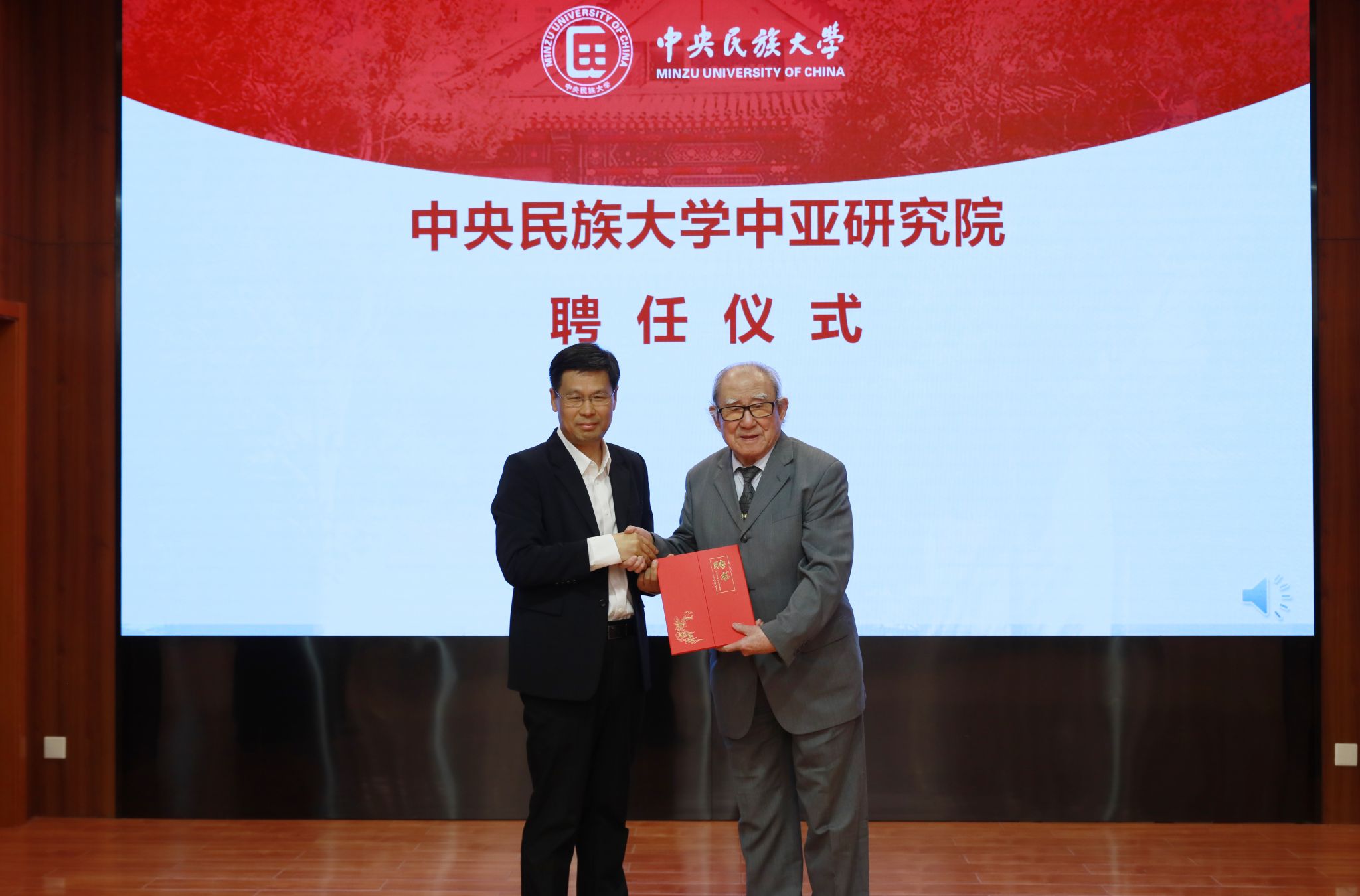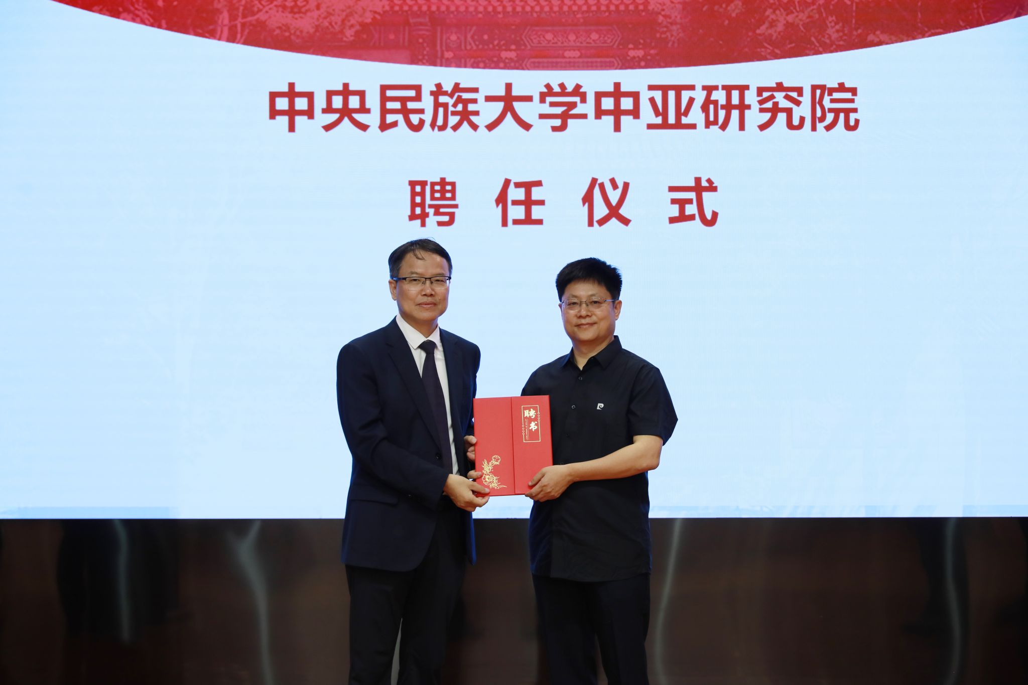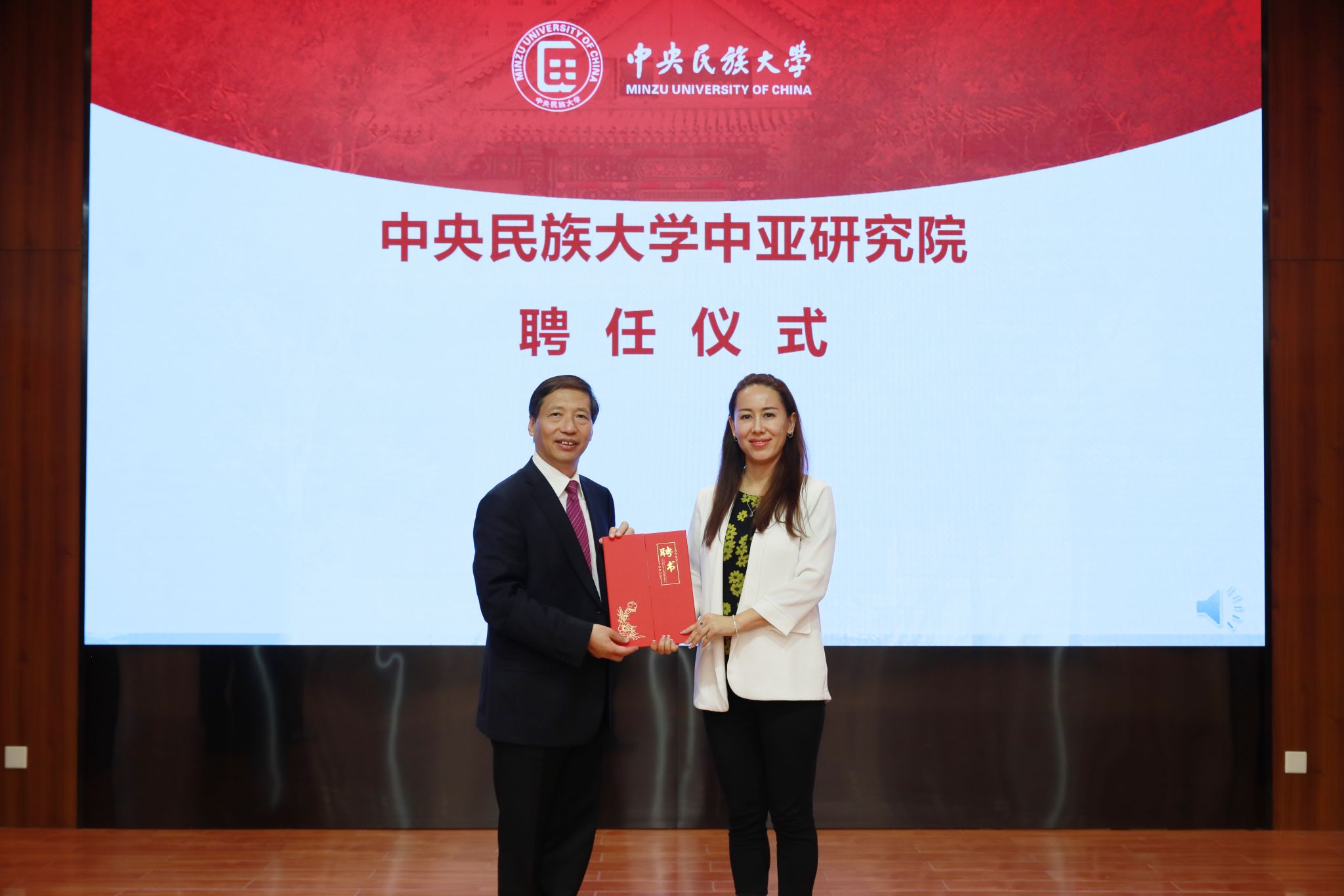 查显友为中亚研究院名誉院长胡振华颁发聘书。郭广生为中亚研究院院长姜镕泽、副院长努尔巴汗·卡力列汗、古丽巴努木·克拜吐里、学术委员会主任杨圣敏颁发聘书。石亚洲宣读学校成立中亚研究院的决定,并为中亚研究院学术委员会副主任颁发聘书。
