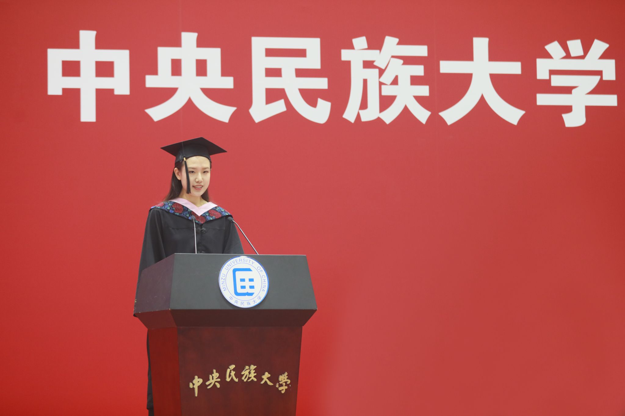 研究生毕业生代表、哲学与宗教学学院郑翔予同学感慨,“民大让我看到了人生如旷野般丰富而宽广的可能”,他将会把这种力量化作“美美与共、知行合一”的实际行动,把铸牢中华民族共同体意识的种子播撒进更多青年心中。