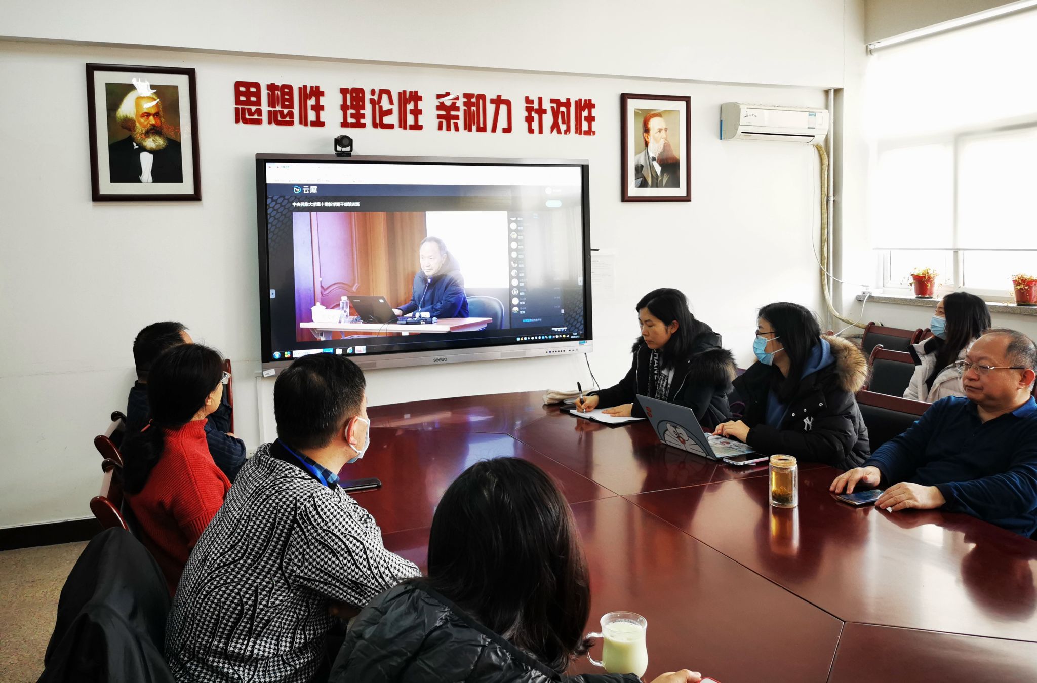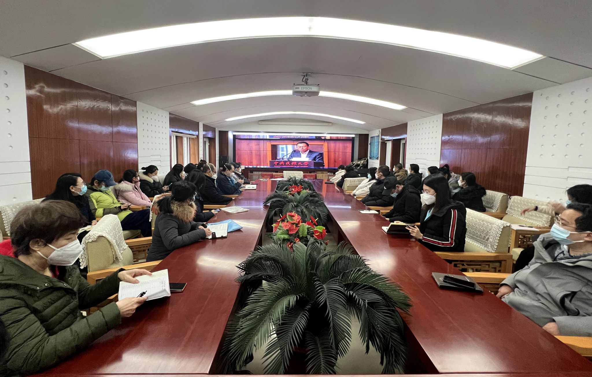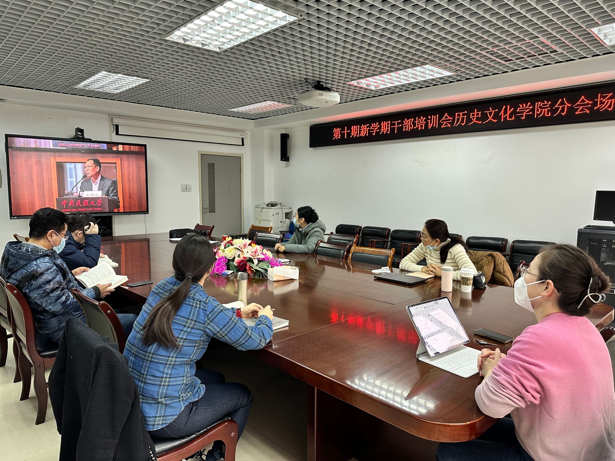 全体校领导和各单位主要负责人在知行堂主会场、其他处级干部和所有科级干部在文西报告厅、全体教师在各学院分会场通过直播方式线上参加培训。共约2000名干部职工和教师参加培训。
