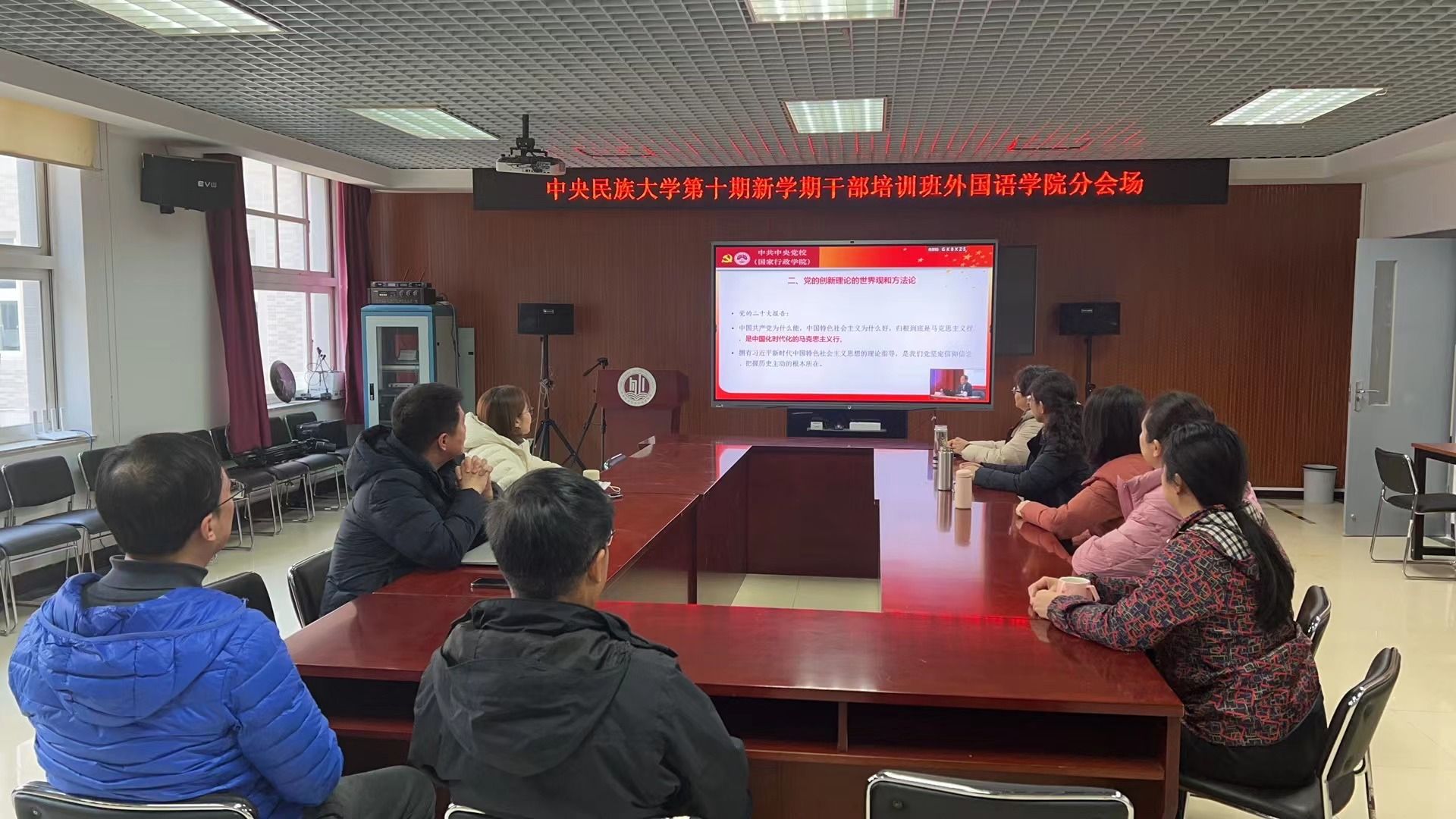 2月15日上午,学校以“深入贯彻落实党的二十大精神和委属事业单位改革发展部署会议精神,守正创新、勇毅前行,以铸牢中华民族共同体意识为主线,加快促进转型升级,扎实推进学校高质量发展”为主题,在知行堂举办第十期新学期干部培训班,以昂扬的精神状态迎接崭新的学期。中央党校(国家行政学院)教授、博士生导师周文彰教授应邀以“学好用好习近平新时代中国特色社会主义思想的世界观和方法论”为题作党的二十大精神辅导报告。