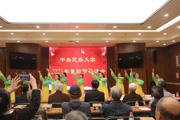 离退休工作处为老同志们精心准备了舞蹈、少数民族器乐表演、歌舞表演、诗朗诵等文艺演出,赢得老同志们的交口称赞和阵阵喝彩。(摄影:费娜 丁琦)