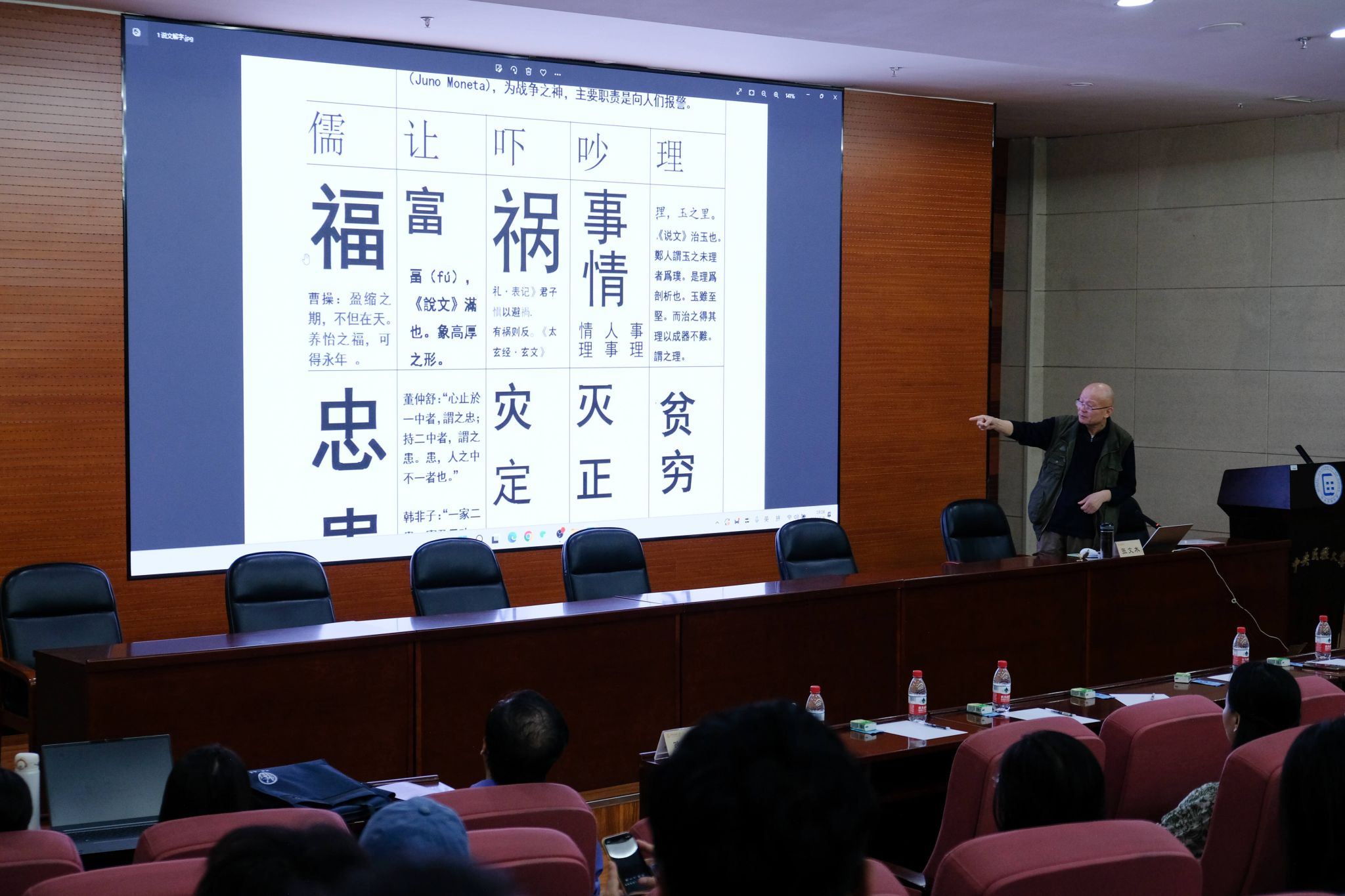 此次讲座围绕习近平总书记在文化传承发展座谈会上的重要讲话,重点阐述了中华文明的突出特性以及“第二个结合”的重大理论价值与现实意义,集中讲述了中国在全球发展格局中展现的远见卓识,在推动科技发展、安全策略和世界经济模式创新中承担的重要角色。张文木以一段与杰出科学家钱学森的深入交流为引子,勉励在座的学子们,应秉持解放思想的态度,不应受限于自身专业的界限。通过一系列深入浅出的案例,张文木教授指出,马克思列宁主义提出了有别于中国“民本”传统的以无产阶级为主的“人民”问题,马克思主义基本原理与中国优秀传统文化相结合的关键是,毛泽东领导中国共产党发现了“人民”,从群众中来,到群众中去,才能立于不败之地。他认为,理解习近平总书记提出的“第二个结合”,需要理解“以人民为中心”的重要论断;坚持党的领导和以人民为中心,是中国从容应对百年未有之大变局的基础。