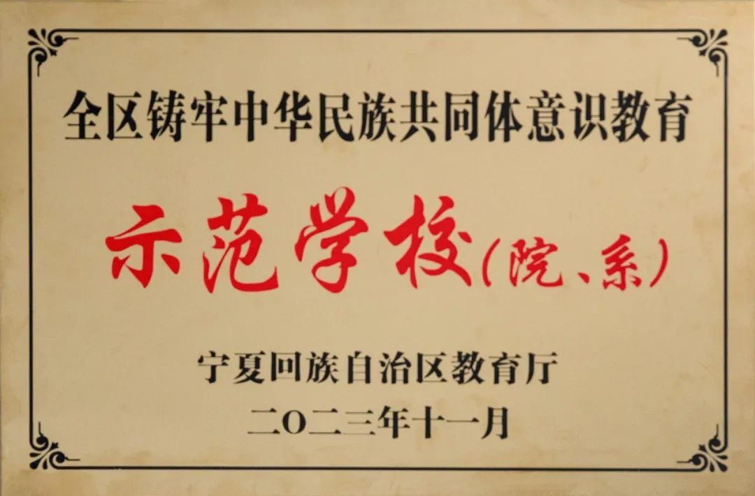 ▲北方民族大学获评宁夏回族自治区铸牢中华民族共同体意识教育示范学校。