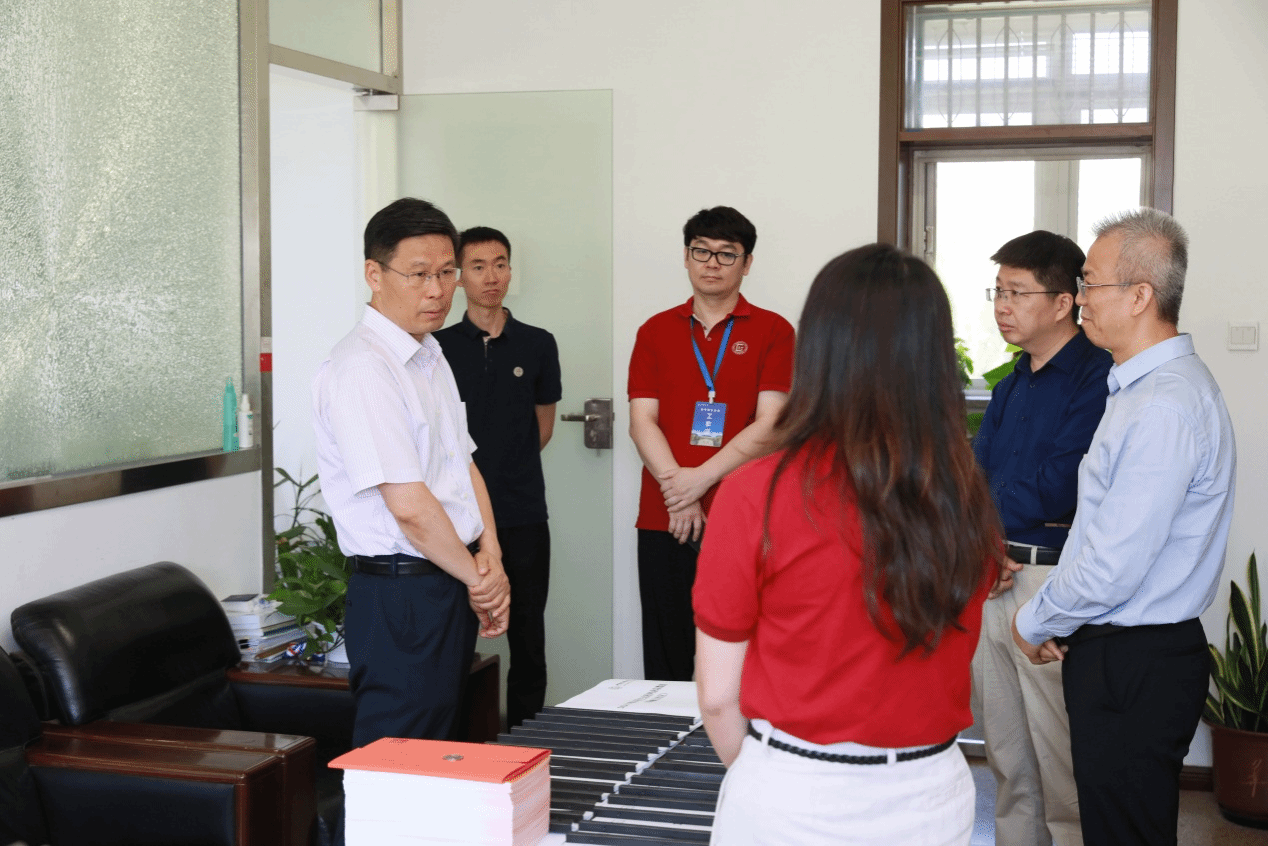 查显友听取了招生就业工作处关于2024年招生录取工作进展情况的汇报,查看了招生咨询、阅档、录取、通知书制作等招录工作环节,详细了解了各省区市生源投档及录取情况,并与现场工作人员进行了亲切交流。