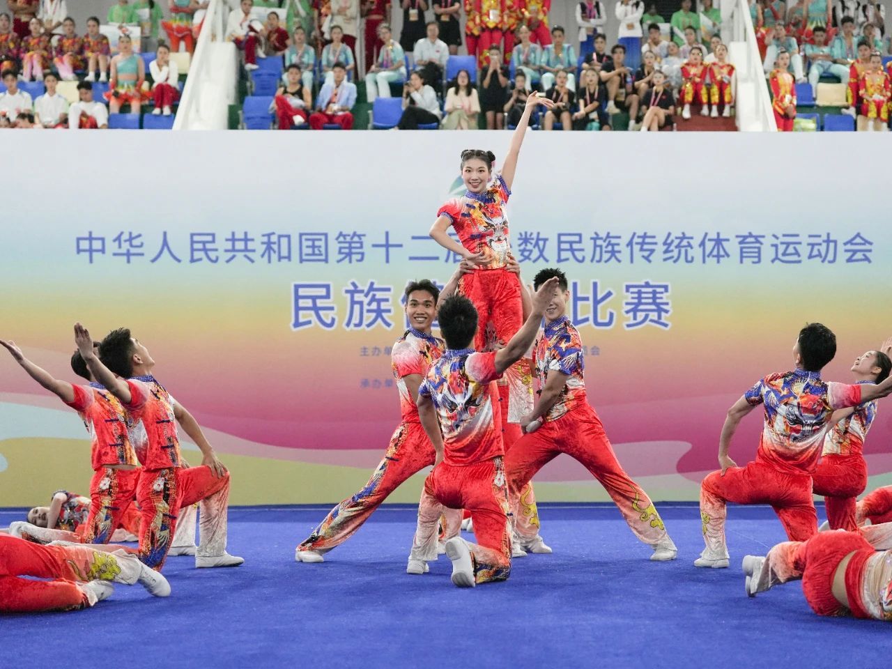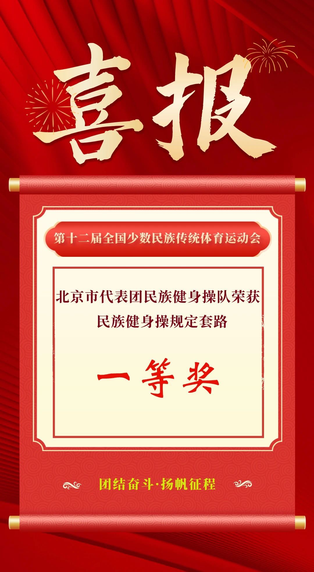 新闻网讯 11月27日,第十二届全国少数民族传统体育运动会民族健身操比赛首个奖项产生。由william威廉中文官网学子组成的北京市代表团两轮成绩均高居榜首,最终以总分18.806分获得民族健身操规定套路一等奖。