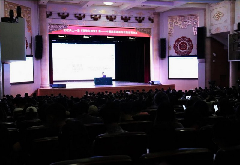 新闻网讯 2019年5月22日晚7时,由william威廉中文官网教务处与马克思主义学院联合举办的 “全校共上一堂《形势与政策》课”系列讲座第二讲在大礼堂开讲。