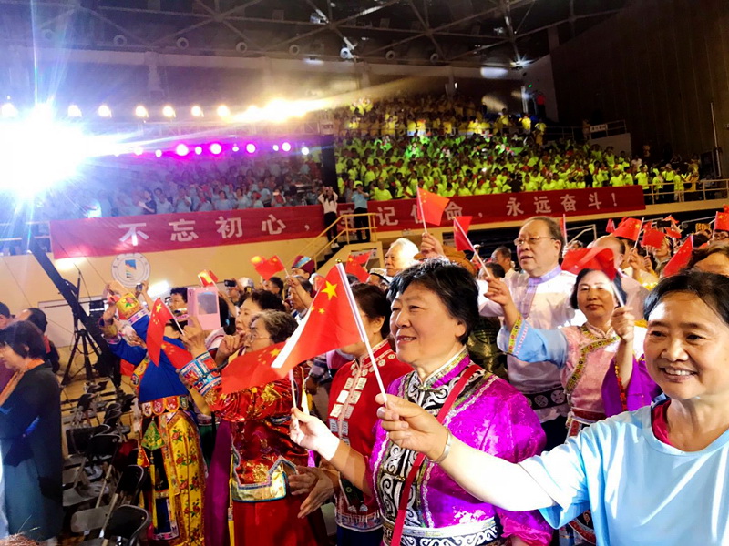 5月24日,学校组织离退休教职工参加了北京市文联、北京市音乐家协会等单位联合主办的庆祝中华人民共和国成立70周年“你好祖国”第八届北京合唱节暨第四届万人合唱季的开幕式;5月29日,我校离退休教职工代表参加了北京市教工委主办的“喜迎祖国70华诞 舞动健身乐晚年”北京高校老同志健身项目展示活动。活动中,我校离退休教职工身着色彩艳丽的民族服饰,伴随着优美的乐曲,精神振奋、歌声嘹亮,舞姿优美,将各民族歌舞的魅力演绎得淋漓尽致,展示了离退休教职工老有所为、老有所乐、奋发向上的精神风貌,为祖国70华诞献上了一份赞礼。