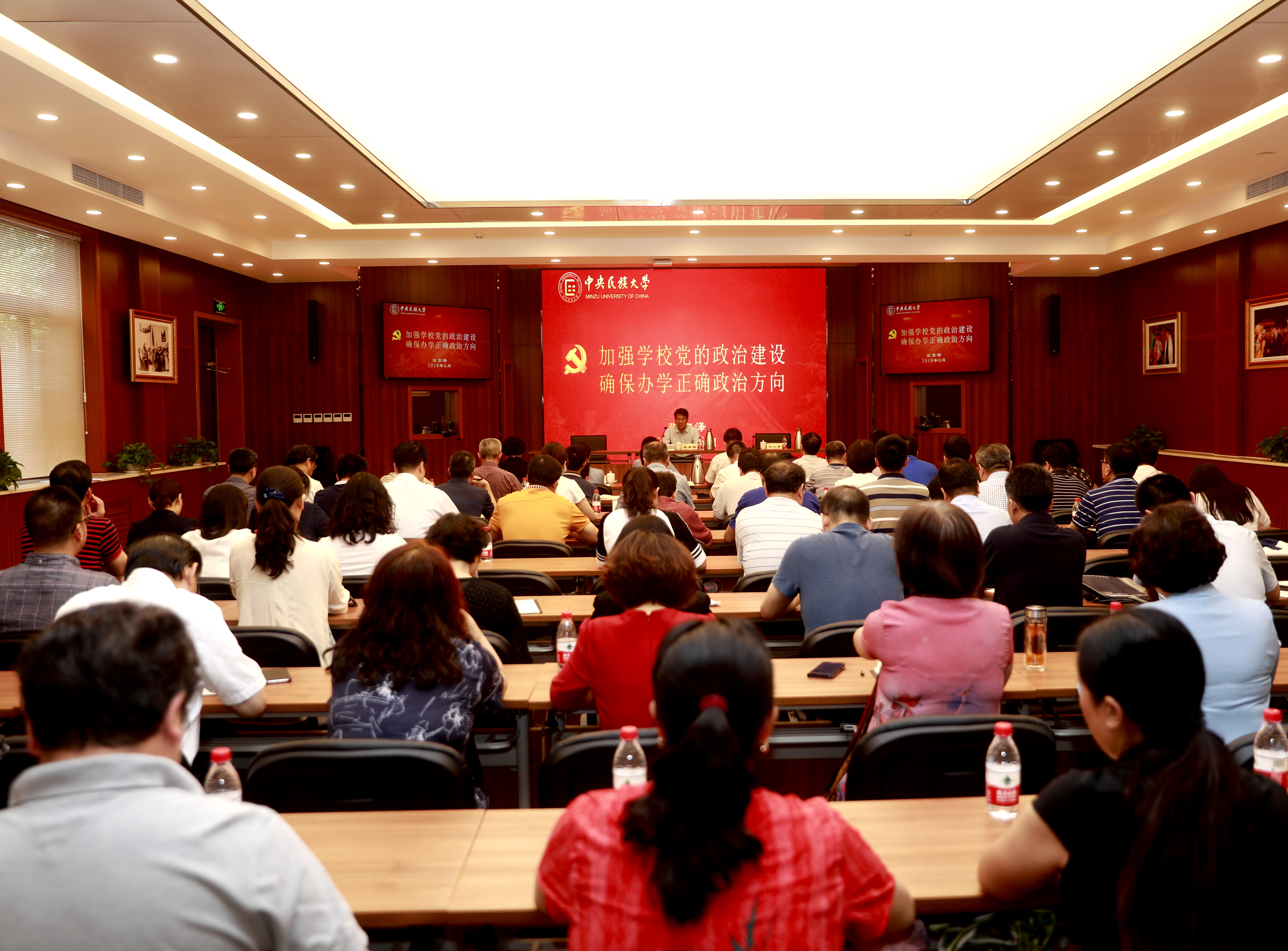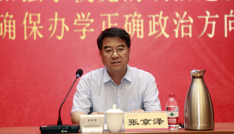 张京泽强调,加强党的政治建设是党委每位同志、学校各级领导干部、广大教师必须高度重视、狠抓落实的一项重要工作。我们要提高认识,统一思想,树牢“四个意识”,坚定“四个自信”,做到“两个维护”,坚持办学正确政治方向,铸牢中华民族共同体意识,全面推进学校的“双一流”建设。