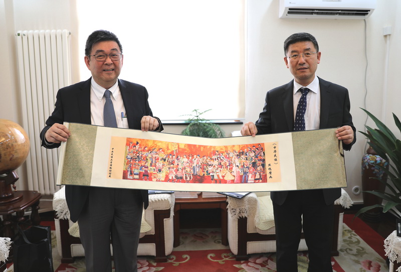 会见后,李天任一行参观了我校民族博物馆“先生还在身边”“少数民族乐器”“锦‘绣’中华”等展厅。(摄影:马丹妮)