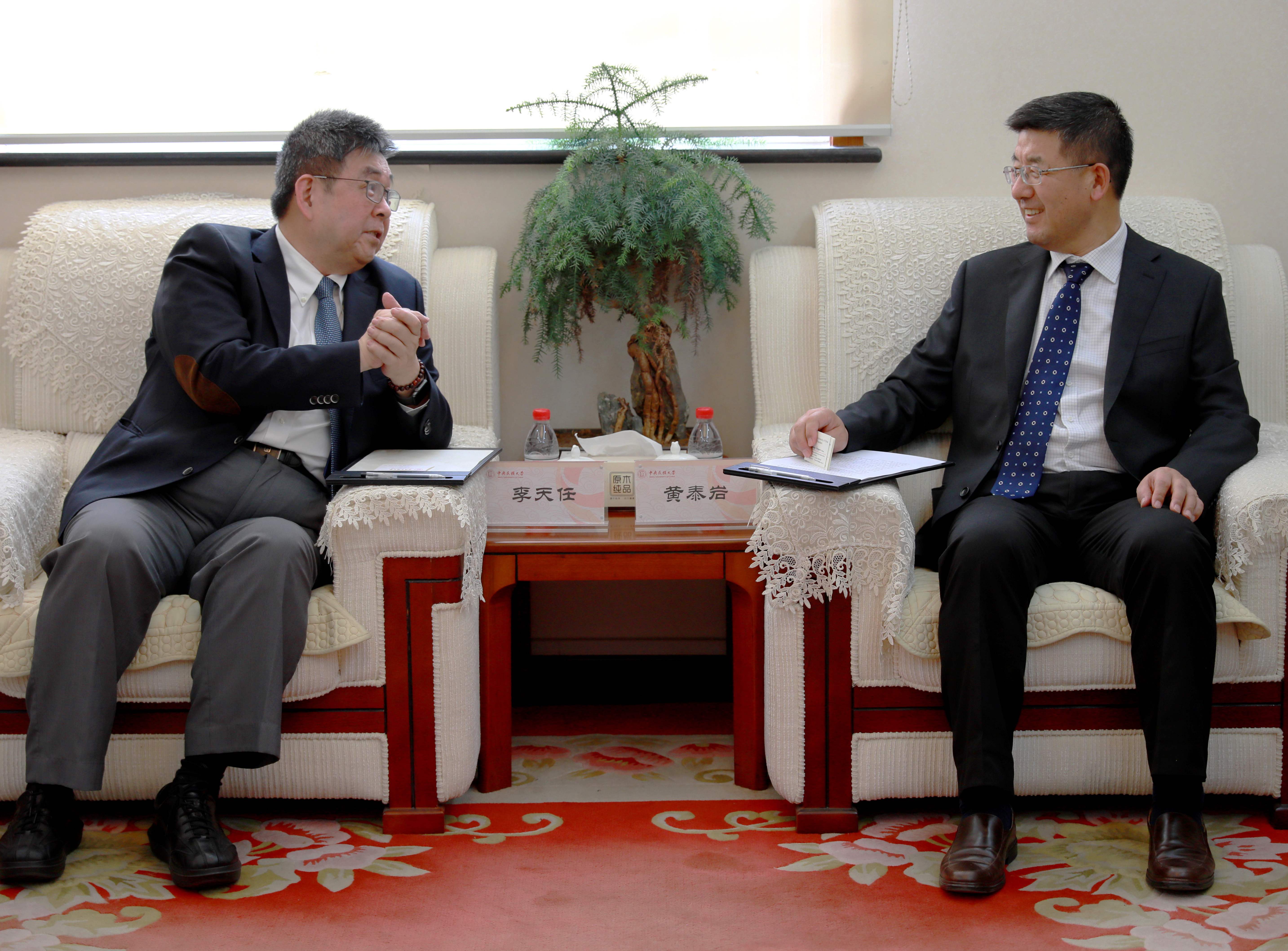 黄泰岩对李天任一行的来访表示热烈欢迎,并介绍了我校的学科建设、人才培养、学术研究等情况。他希望两校能够根据各自特点和需求,在各层次、多领域展开交流合作。