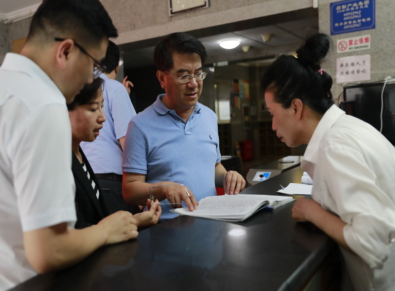 张京泽向公寓部工作人员仔细询问宿舍日常管理工作情况,认真查阅学生晚归登记表,了解各学院负责人及辅导员的日常走访情况。