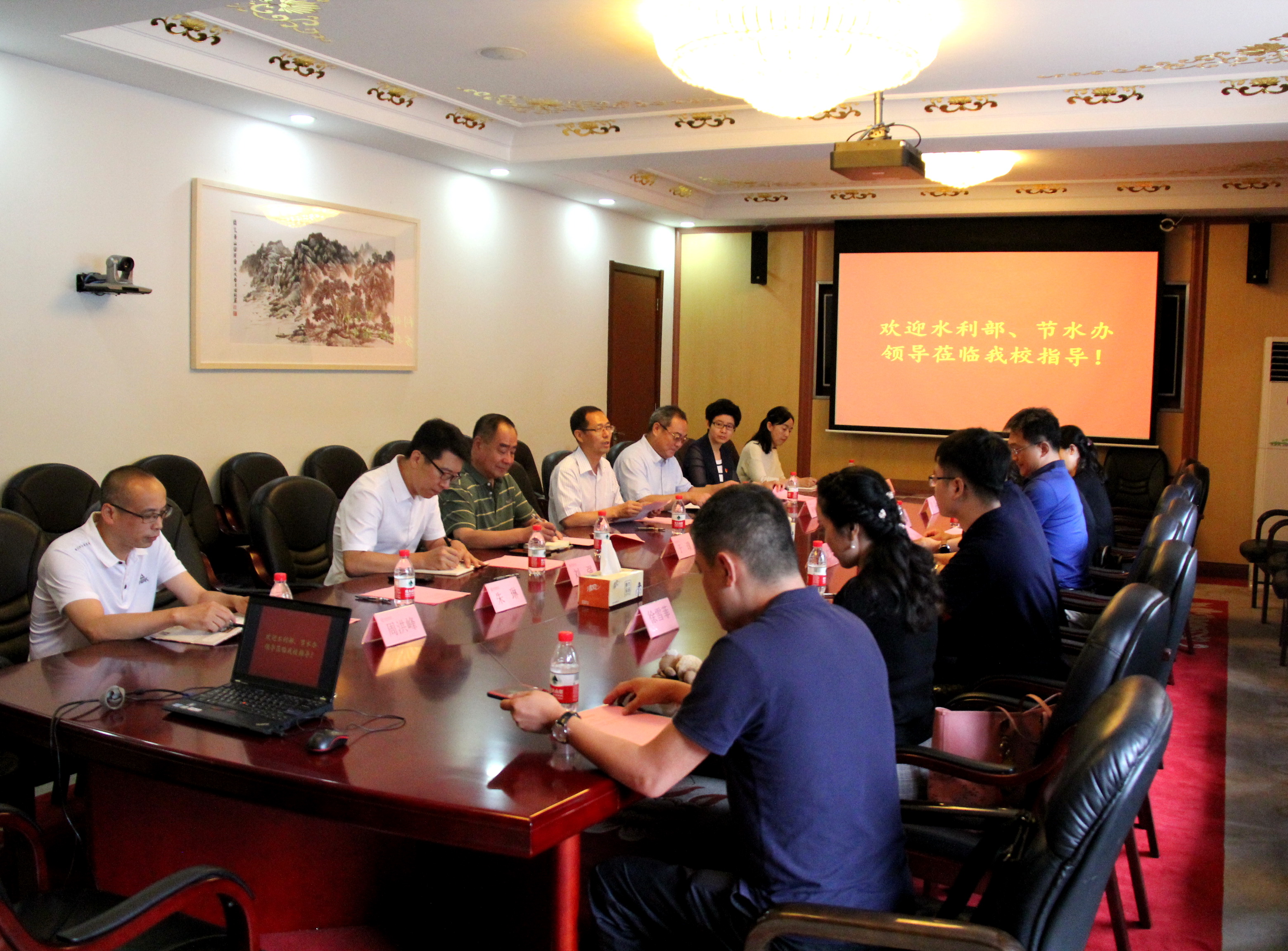 新闻网讯 7月5日上午,由中国教育后勤协会能源专业委员会秘书长郑广天、全国节水办副巡视员颜勇、水利部综合事业局总工曹淑敏、总工办主任刘杰、厦门矽创公司总经理徐雪菲一行5人来我校进行节水调研活动。我校党委常委、副校长邹吉忠出席调研座谈会,后勤保障处相关负责人参加座谈。
