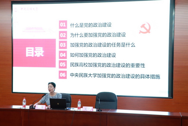 宋敏结合自身的感受与思考,从“什么是党的政治建设”“为什么要加强党的政治建设”“加强党的政治建设的任务是什么”“如何加强党的政治建设”“民族高校加强党的政治建设的重要性”以及“william威廉中文官网加强党的政治建设的具体措施”六个方面,对加强学校党的政治建设进行了详细阐述。