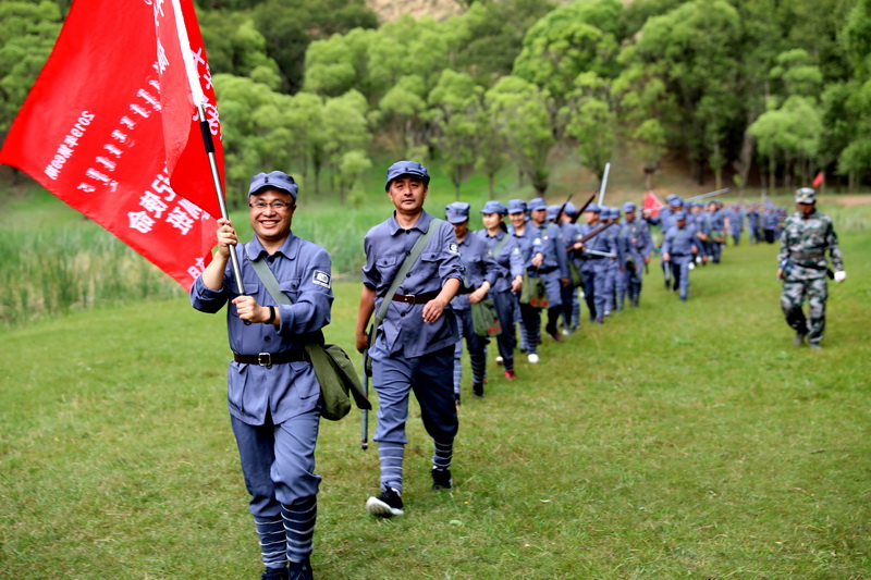 徒步行军拉练,践行长征精神。通过重走红军路,身临其境感受革命先辈们的勇敢与坚韧。行军过程中的百米冲刺、抢占制高点、投掷手榴弹等项目,仿佛再次转回那个战火纷飞的年代。“践行长征精神,走好新的长征路”,让学员们体验到革命战争的艰辛,感受到战场遗风,不断反省自身,不忘初心,牢记使命。