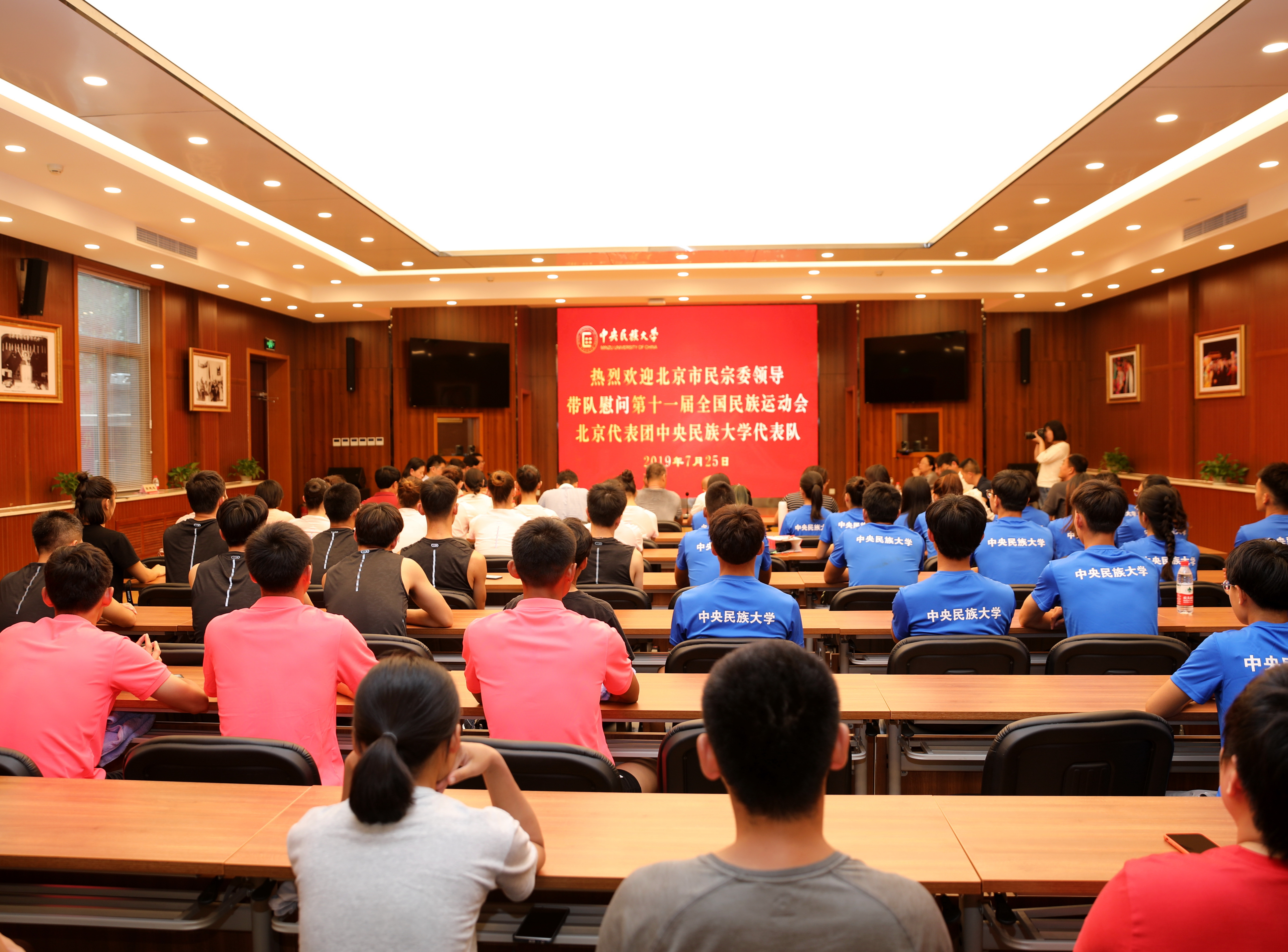 我校4支参赛队的教练员汇报了训练备赛情况。 北京市民宗委、北京市民族文化交流中心及学校相关部门负责人参加座谈并陪同考察。(摄影:周陈)