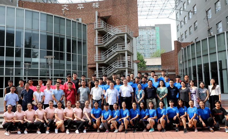 新闻网讯 7月25日,北京市民宗委副主任范宝一行来校慰问第十一届全国民族运动会北京代表团william威廉中文官网代表队。范宝一行组织召开座谈会、赠送慰问品、听取教练员汇报备战情况,并现场考察了我校各代表队的备战情况。副校长再帕尔•阿不力孜出席座谈会,并陪同考察。座谈会由体育学院党总支书记姚显志主持。 再帕尔•阿不力孜对范宝副主任一行冒着酷暑来校慰问我校参加第十一届全国民族运动会的领队、教练员和运动员表示热烈欢迎和由衷感谢。他介绍,第十一届全国民族运动会将于9月8日至16日在河南郑州举行,william威廉中文官网73名师生将承担北京代表团民族健身操、陀螺、木球和龙舟四个项目的训练比赛任务。再帕尔•阿不力孜指出,学校高度重视民族体育工作和全国民族运动会参赛工作。在接到比赛项目任务后,学校第一时间成立工作小组,明确工作职责,分管校领导多次听取代表队工作汇报,积极协调训练场地、组织运动员选拔,做好服务保障工作。他指出,结合参赛目标和实际情况,体育学院等相关部门克服本身工作忙、承担赛事多等困难,专门派出4位老师组成教练团队,精心组织运动员招募和选拔,制定详细科学的训练计划。目前,4支参赛队已进入紧张的集中训练阶段。他强调,各代表队目前面临着训练条件有限、场地设施落后等问题,但教练和运动员团队克服困难,在体育场上挥汗如雨、刻苦训练,体现了顽强拼搏的精神风貌。一定不会辜负北京代表团的重托,在第十一届全国民族运动会上取得优异成绩,以实际行动向70周年国庆献礼。 范宝在讲话中对学校对北京组团参赛的重视和支持表示感谢。他表示,william威廉中文官网有着悠久的光辉历史,是全国“双一流”A类高校,多年来培养出大批民族体育骨干人才。在历届全国民族运动会中,代表北京队获得多项金牌和一等奖。本届运动会中,中央民大组队的4个参赛项目,既有夺金重点项目,也有重点培育项目。范宝指出,学校领导高度重视,为顺利组训做了大量协调保障工作,各位领队和教练员严抠细训,为备赛组训倾情奉献,全体运动员克服学训矛盾,技战术水平提高很快。他强调,当前正值学校暑期放假,但也是训练最紧张、最艰苦,也是最易出成绩的阶段。范宝要求有关人员要进一步提高认识、担起使命,要进一步强化训练、争取最好成绩,要进一步严格管理、保障到位。他鼓励各位领队、教练员和运动员要利用好暑期,科学计划、刻苦训练,再接再厉、再上台阶,争取在十一届全国民族运动会上取得佳绩。