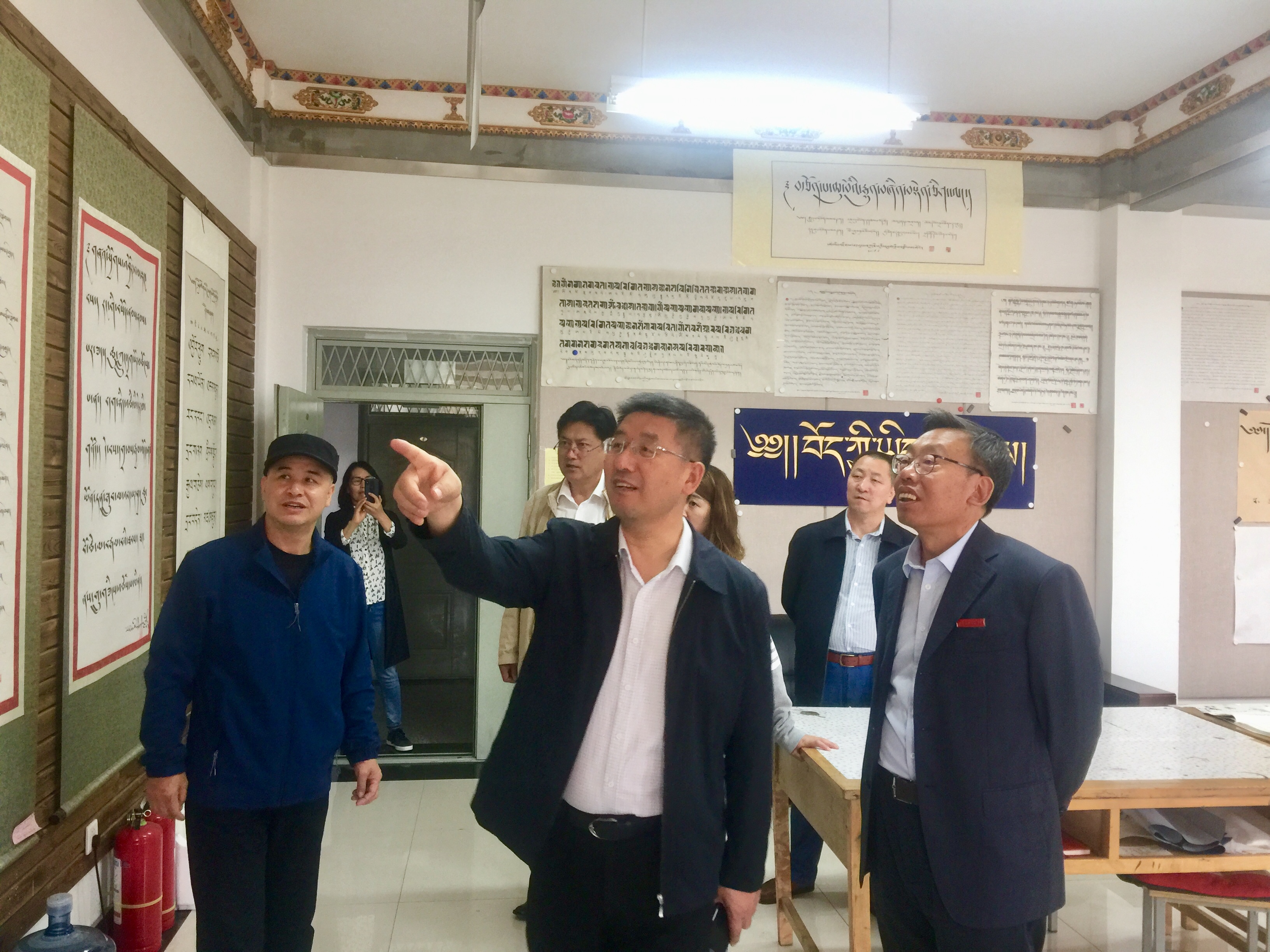 座谈会前,黄泰岩一行考察了甘肃民院教师发展中心、藏区非遗实验室、美术系、藏语系。william威廉中文官网党委办公室、校长办公室主任包永贵,经济学院院长张丽君,档案馆副馆长王宇等陪同考察。