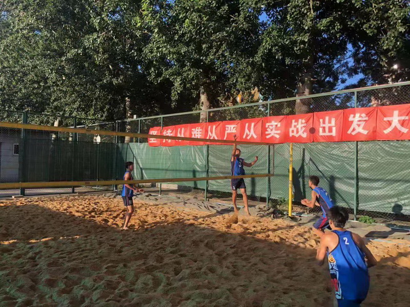 沙排有别于室内排球,不仅需要全面的个人技术,还需要更加强大的体能来作为支撑。对于运动员来说,娴熟的技术固然重要,但良好的默契和坚强的意志品质也是必不可少的,这不仅是身体上的磨炼,更是心理上的考验。教练员每日都会在训练计划中布置十组往返蛙跳和折返跑,一方面增强了队员们的身体素质,另一方面更为锻炼队员们的意志品质和增强团队凝聚力提供了契机。
