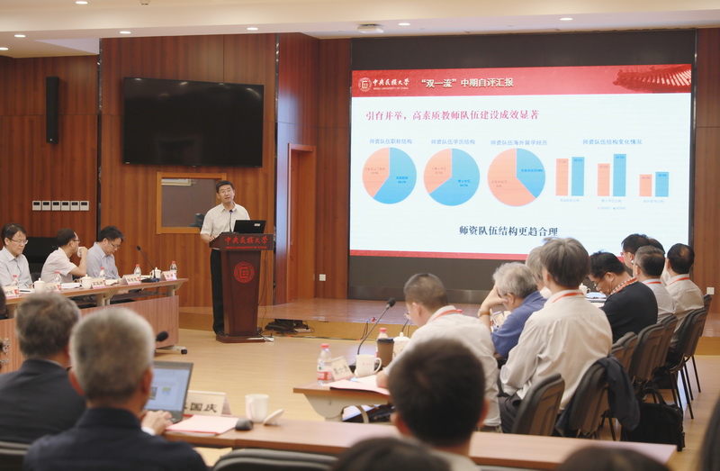 校党委副书记、校长黄泰岩以“牢记使命 砥砺前行 推进世界一流大学建设”为题,从“定位、目标、做法”“建设成效”“发展机遇与挑战”等三个方面汇报了学校“双一流”中期建设情况。校党委常委、副校长麻国庆从“总体建设情况”“建设目标完成情况”“进一步发展思路”等三个方面汇报了民族学一流学科群建设情况。与会专家对报告中存在的问题提出了意见和建议。