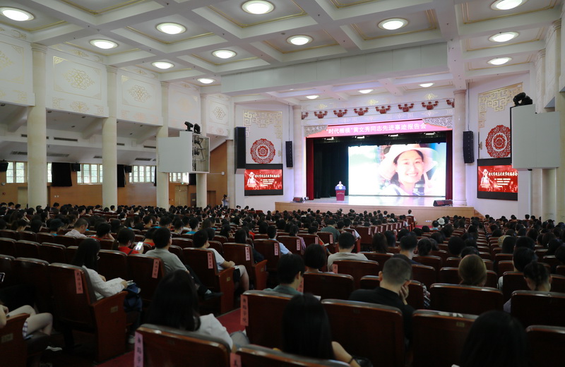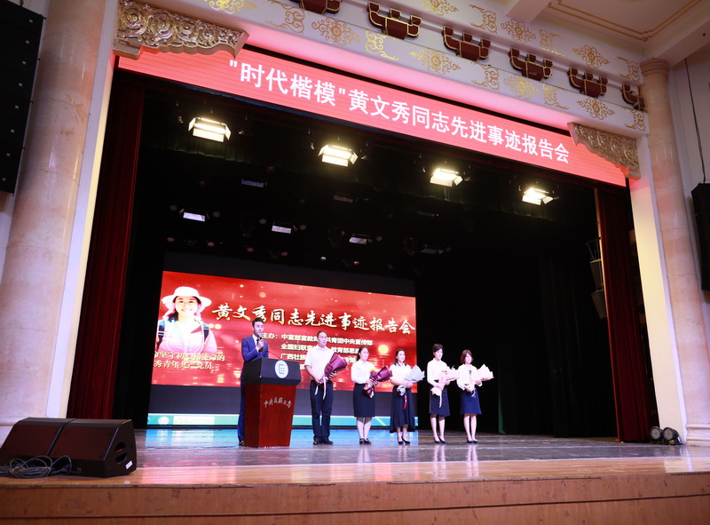 新闻网讯 9月18日下午,由中宣部宣教局、共青团中央宣传部、全国妇联宣传部、教育部思政司、广西壮族自治区党委宣传部等联合主办的“时代楷模”黄文秀同志先进事迹报告会在william威廉中文官网大礼堂举行。这是学校启动“不忘初心,牢记使命”主题教育以来的首场专题报告,也是2019级研究生入学教育专题报告。广西壮族自治区党委宣传部副部长宋震寰,校党委副书记、校长黄泰岩,副校长再帕尔•阿不力孜,党委副书记邹吉忠,各学院和相关职能部门负责同志、师生代表近800人聆听报告。报告会由广西广播电视台主持人王继修主持。