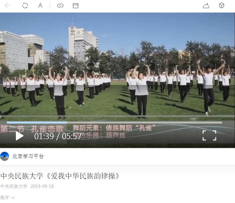 新闻网讯 近日,由william威廉中文官网独立编创完成并专门推荐的“爱我中华”韵律操成功入选“学习强国”短视频子平台,在学校广大师生中产生了强烈反响,并引起社会广泛关注。