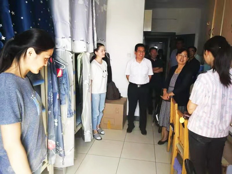 王丽萍、李计勇每到一间宿舍都亲切与新生交谈,询问同学们对校园生活的适应情况,听取他们关于学校发展建设的意见和建议,嘱托他们在学习生活中若遇到困难要及时向学校反映,学校会尽最大努力解决大家的实际问题,希望同学们在生活中互相帮助,学习上相互促进,让大学时光过得充实而有意义,早日实现自己的人生理想。