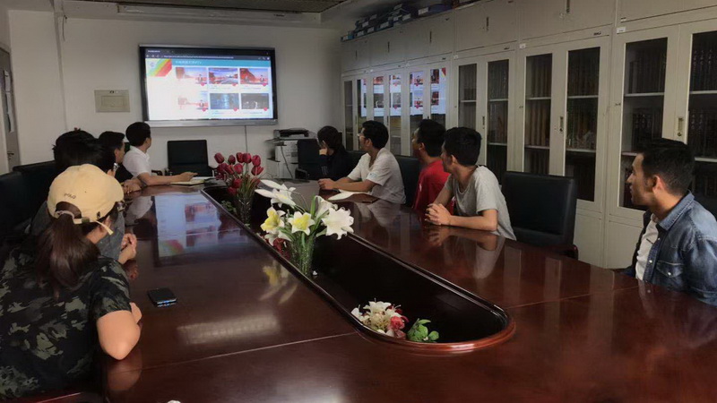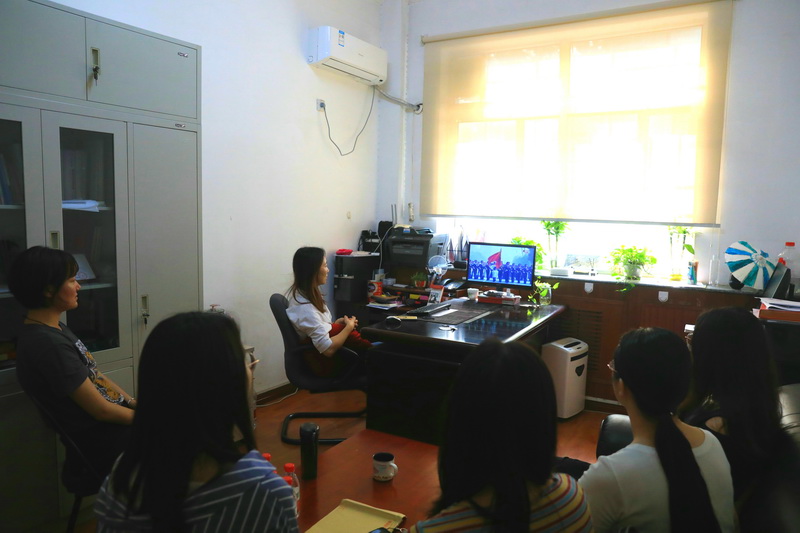 党委宣传部老师与值班学生记者一起观看直播