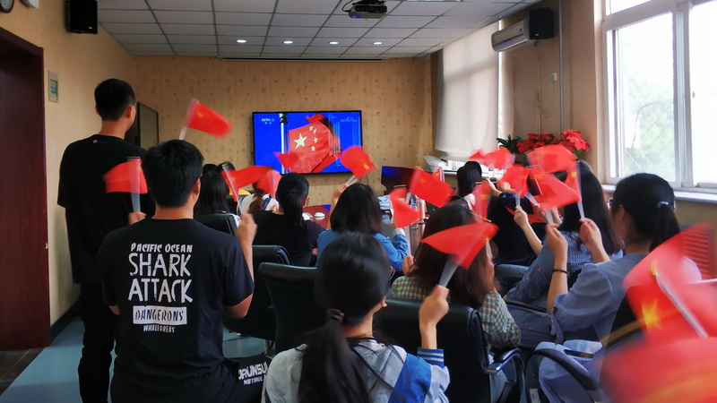 中国少数民族语言研究院直属党支部书记刘正发表示:“今天是神州大地普天同庆祖国生日的日子,习近平总书记的重要讲话鼓舞人心,指明方向;阅兵式展示大国国防实力,令人安心;群众游行展现中国人民从站起来到富起来再到强起来的奋斗历程和丰功伟绩,祥和欢快。”