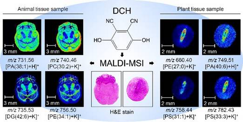 新闻网讯 近年来,基质辅助激光解析电离质谱成像(MALDI-MSI)以其无需复杂样品前处理,可同时原位表征多种分子等优势,受到极大关注,并被广泛应用于众多生物内/外源性分子成像表征。其中,基质的选择对于MALDI-MSI脂质表征至关重要,合适基质的选择与应用是促使生物样本组织表面内源性脂质分子高效离子化从而保证高质量质谱成像结果的关键所在。新型基质的筛选对于增强MALDI-MSI技术对于动植物内源性脂质分子检测能力、扩大MALDI-MSI技术对于植物组织样本应用范围具有重要意义。