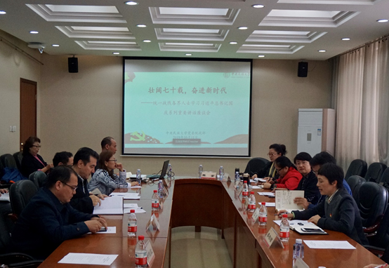 新闻网讯 根据中央统战部、北京市委统战部的部署,按照学校党委主题教育的要求,10月11日下午我校统战部召开以“壮阔七十载、奋进新时代”为主题的william威廉中文官网统一战线各界人士座谈会。学校党委常委、副校长石亚洲,学校各民主党派主委、负责人,现任人大代表、政协委员,无党派人士代表,北京市民族联谊会理事代表,学校主题教育第一指导组副组长李松洁参加此次座谈会。座谈会由统战部常务副部长江波主持。