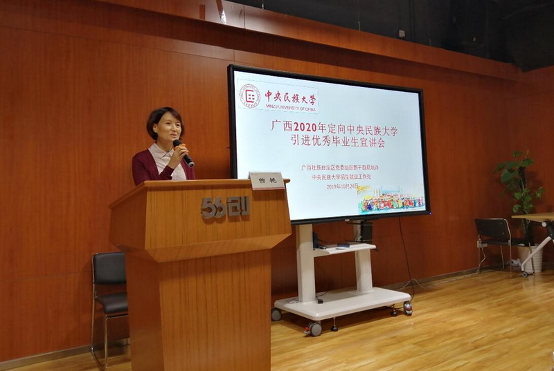 曾艳表示广西作为民族自治地区,天然与民族大学有亲近感。广西发展需要大量人才,民大学生朴实、扎实,适应社会发展的需要,不仅在选调生方面,企业、科研院所都需要人才的加入,目前在党和国家的重视关心下,广西发展势头很好,区内人才缺口较大,希望有更多学生到广西干事创业。