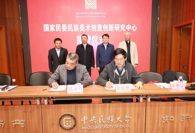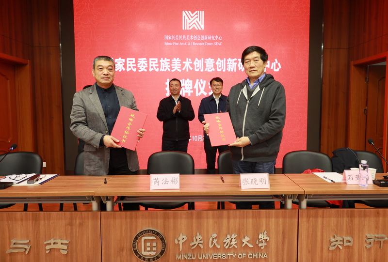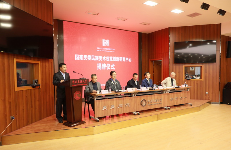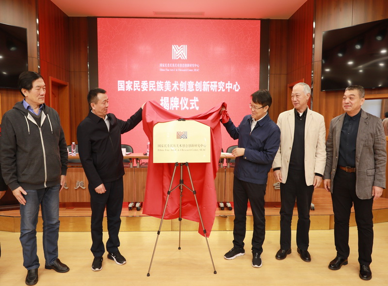 国家民委民族美术创意创新研究中心理事会、专家委员会、专业委员会成员参加了揭牌仪式。(摄影:马丹妮)