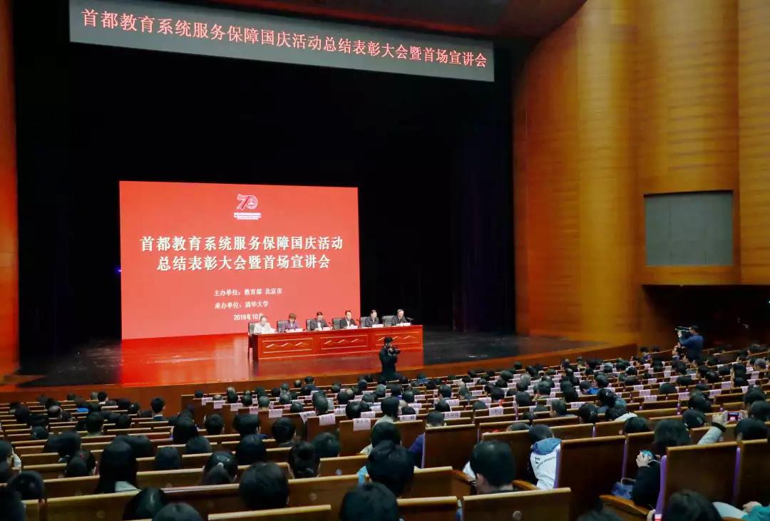 新闻网讯 10月24日,教育部和北京市首都教育系统服务保障国庆活动总结表彰大会暨首场宣讲会在清华大学举行。国家民委专职委员、校党委书记张京泽,校党委常委、副校长王丽萍和我校师生代表参加了大会。