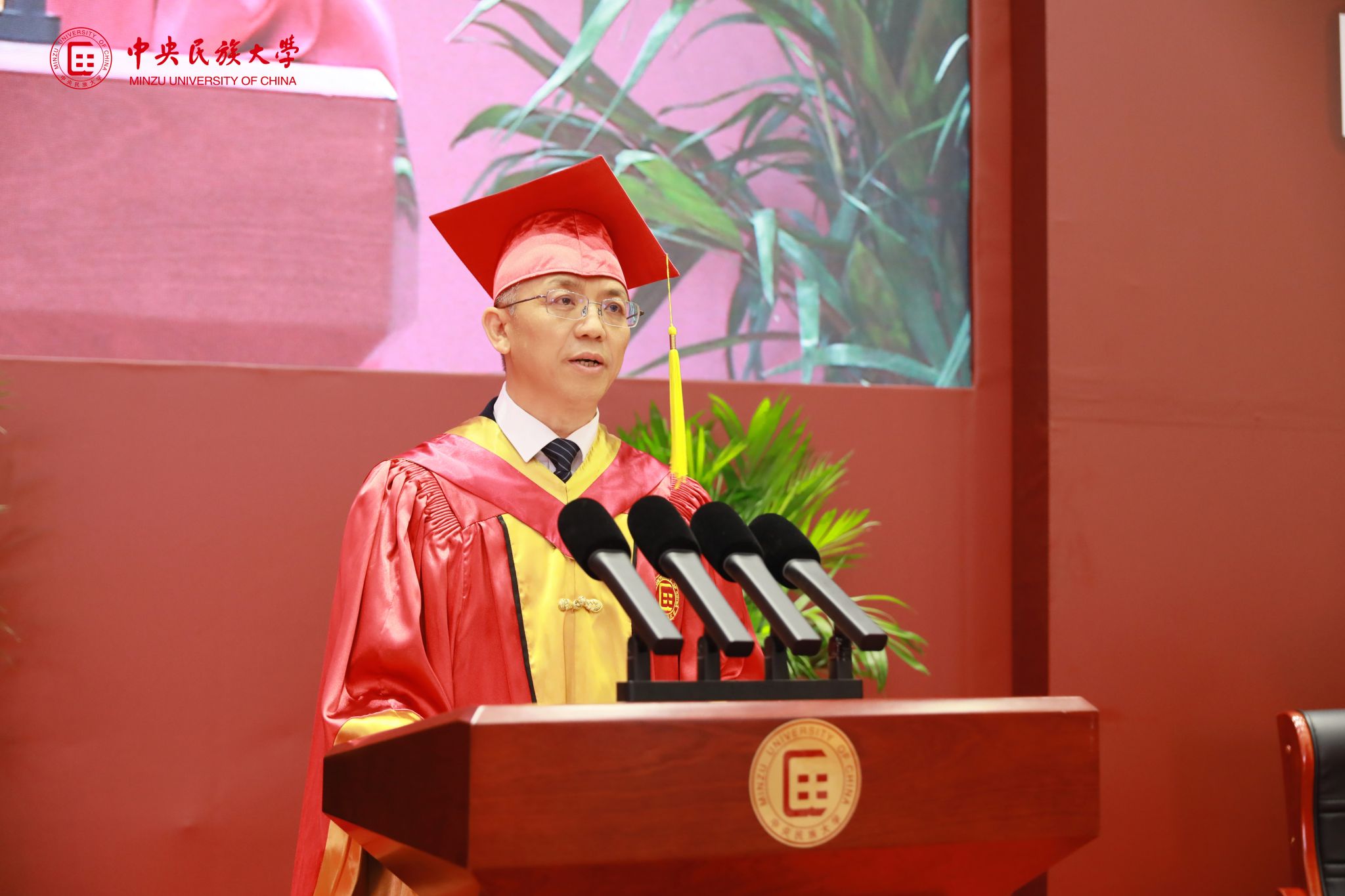 强世功指出,希望毕业生们要扎根中国大地,做负重前行的建设者,肩负对自己的责任、对工作的责任、对家国天下的责任,努力建设好中华民族共同体,推动构建周边命运共同体和人类命运共同体;要坚守大学之道,做中华文明的弘道者,无论从事何种职业、身处何种境遇,要涵养心性,用内心的光明照亮人生,做名副其实的“民大人”;要投身社会课堂,做终身学习的践行者,要向前辈和同行学习,从生活实践中求知,做好知识接力传承,让民大成为所有“民大人”共有的精神家园。