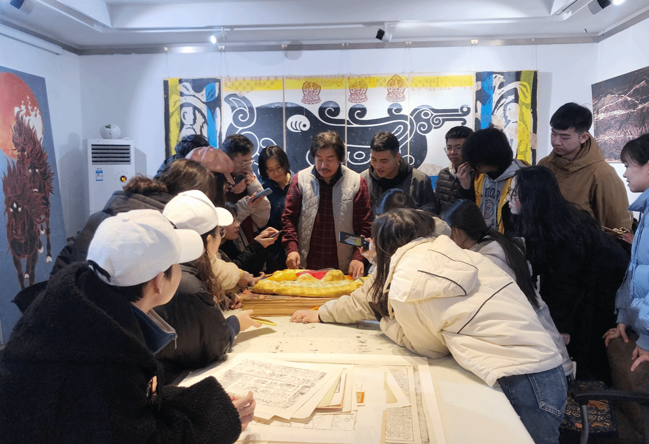 2021年,当教师团队接下“庆祝建党百年大型美术创作工程”时,他们的课堂便延伸到了巨幅画布前。一位参与创作的学生回忆:“老师指着画布上一位代表的衣襟纹样说,‘这不仅仅是图案,更是中华民族的文化密码。我们要怀着敬畏之心去描绘。’”为了精准刻画《中华民族一家亲》民族团结的历史性握手,师生们一头扎进资料堆,反复研读史料,比对影像。大家一遍遍调整人物的神态、服饰的细节,力求每一笔都传递出真挚的情感。当这幅凝聚着师生心血的作品,悬挂在中国共产党历史展览馆时,那份参与国家叙事的自豪感,对历史的敬畏、对文化的深情,通过老师的言传身教,无声地浸润着年轻学子的心灵。
