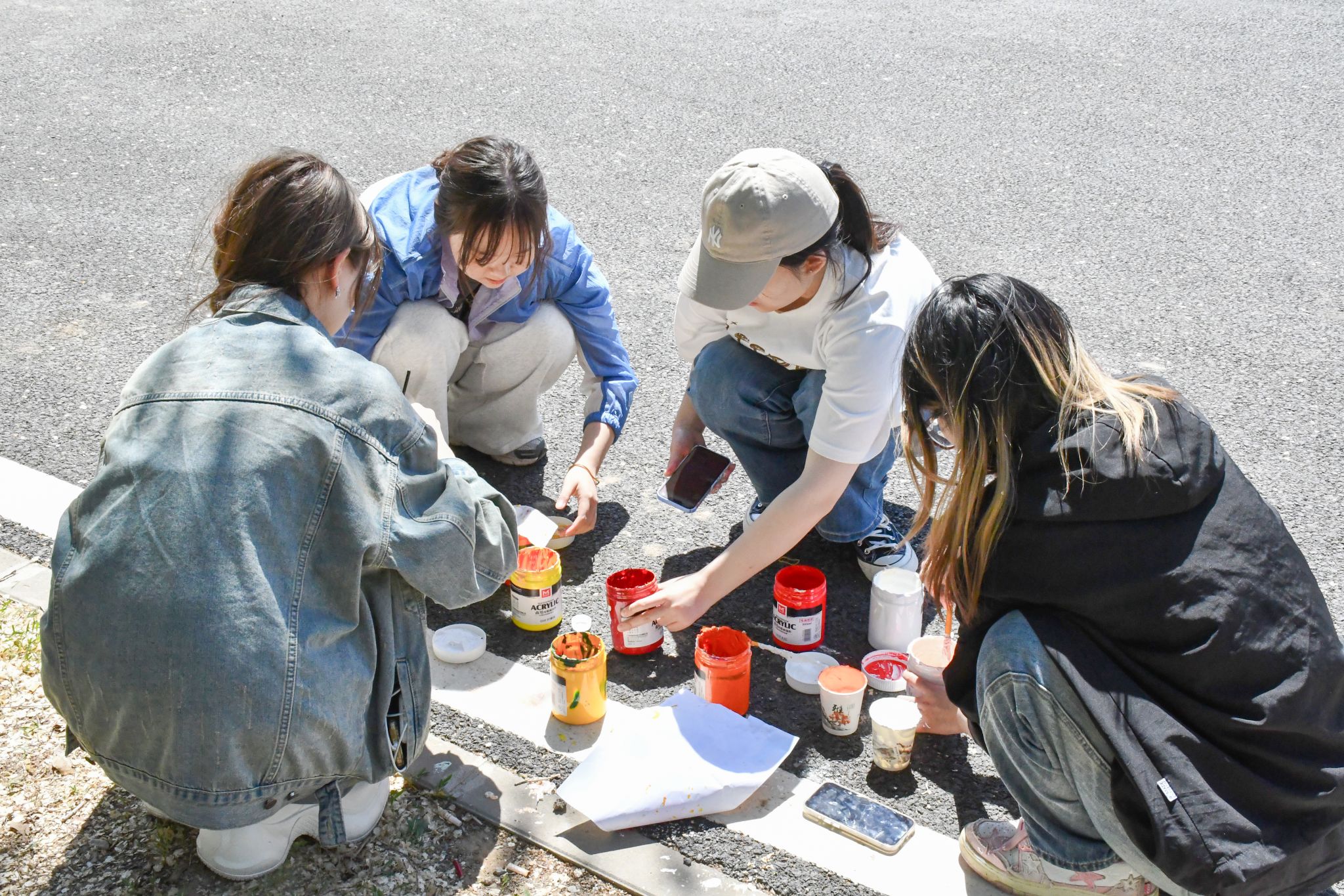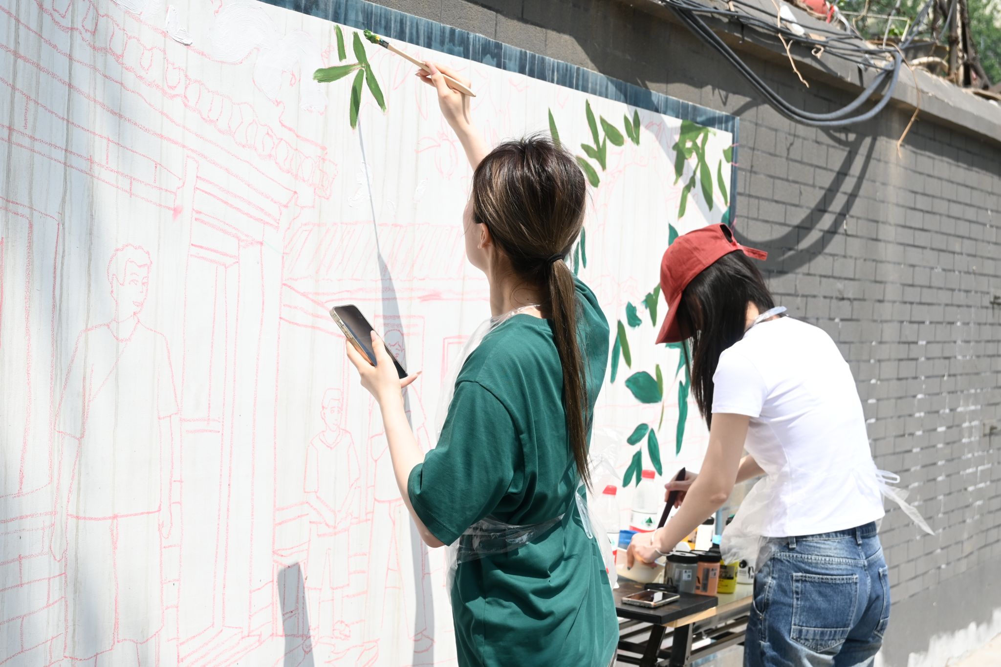 学生志愿者参与主题墙绘