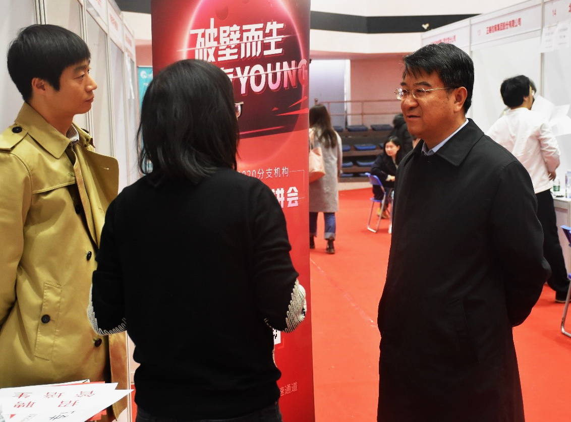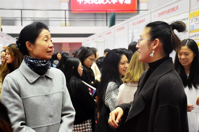 双选会开始不久,国家民委专职委员、校党委书记张京泽,党委常委、副校长宋敏先后莅临现场,检查招聘会各项准备情况,逐一查看参会单位门楣,不时与到访的用人单位代表交谈,推介学校和相关专业,同时了解单位情况、招聘职位、应届生待遇和发展前景等信息,收集市场对学校的反馈建议。校领导还与参会毕业生交流,细致询问学生专业和就业期望,勉励大家多去尝试,积极寻找机会,实现自己的职业理想。