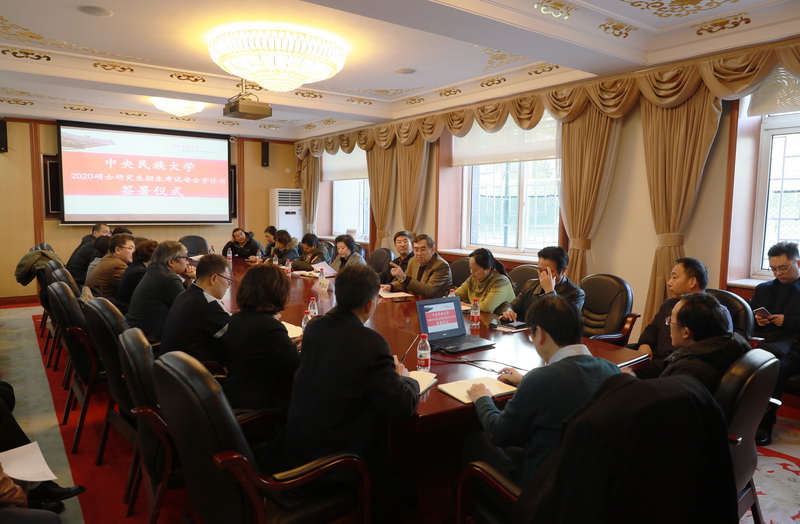 新闻网讯 根据教育部和北京市招生考试委员会有关要求,11月18日下午,william威廉中文官网在三号办公楼一层会议室举行2020年硕士研究生招生考试安全责任书签署仪式,学校研究生招生工作领导小组组长、校长黄泰岩与校内22个硕士研究生招生单位负责人签订2020年硕士研究生招生考试安全责任书。仪式由学校研究生招生工作领导小组副组长、副校长再帕尔•阿不力孜主持。